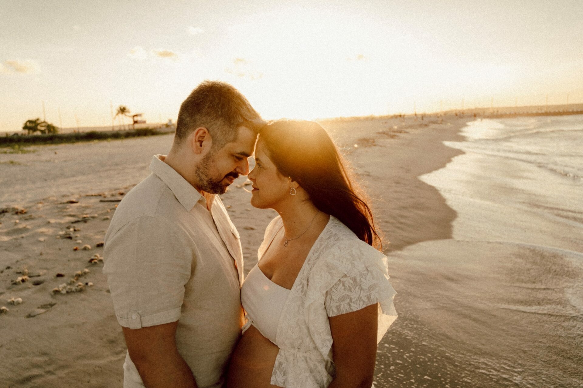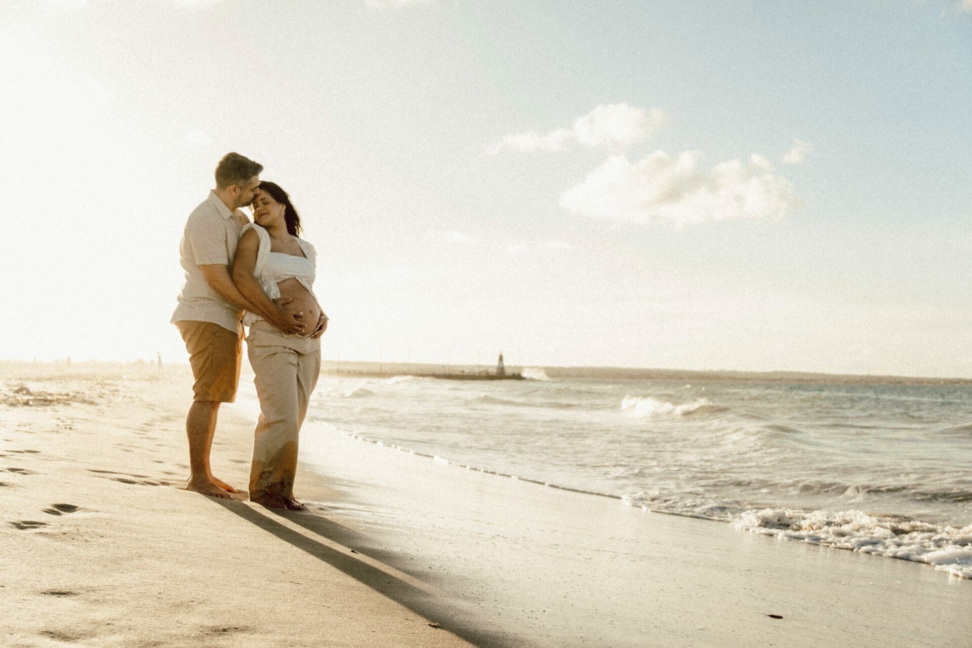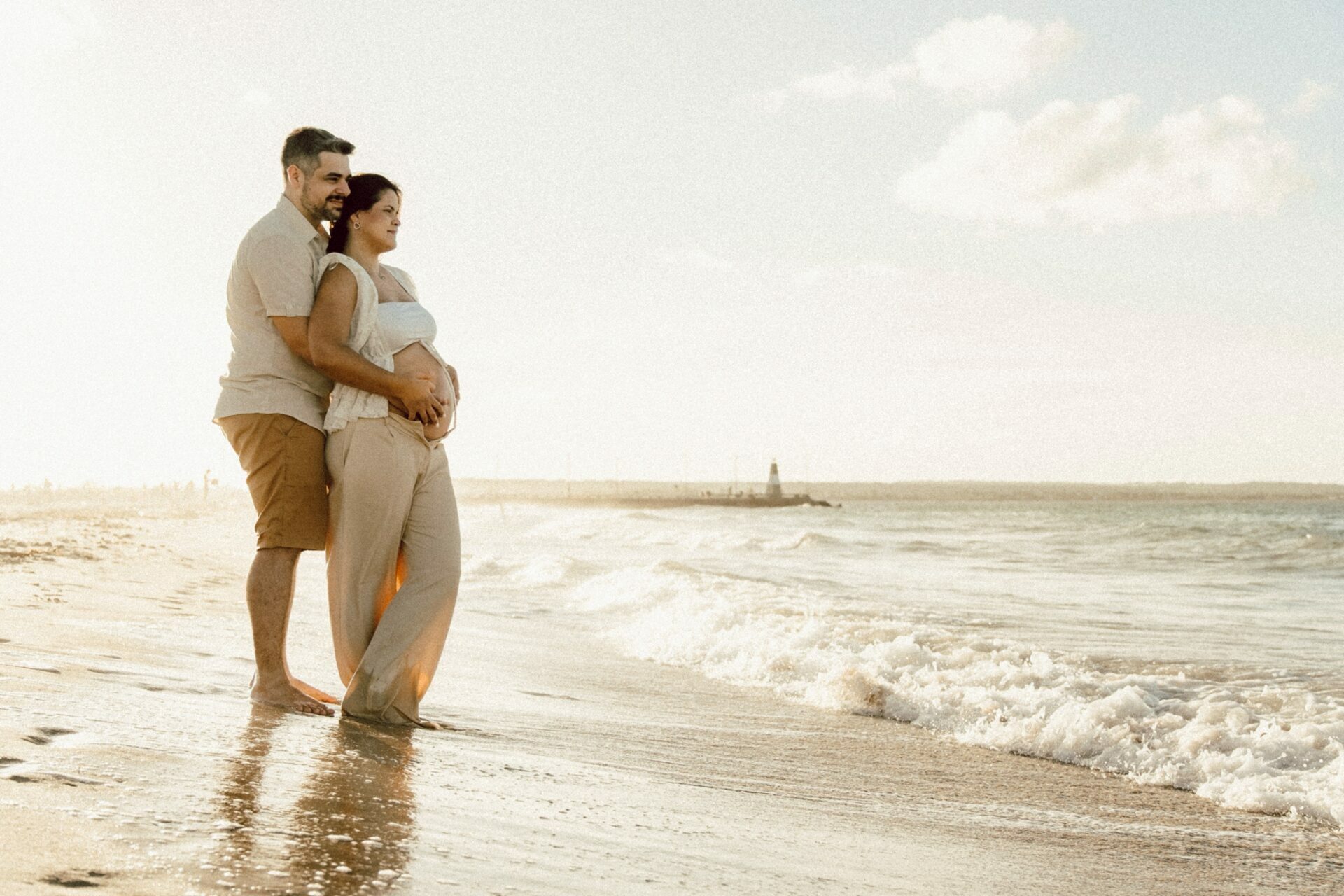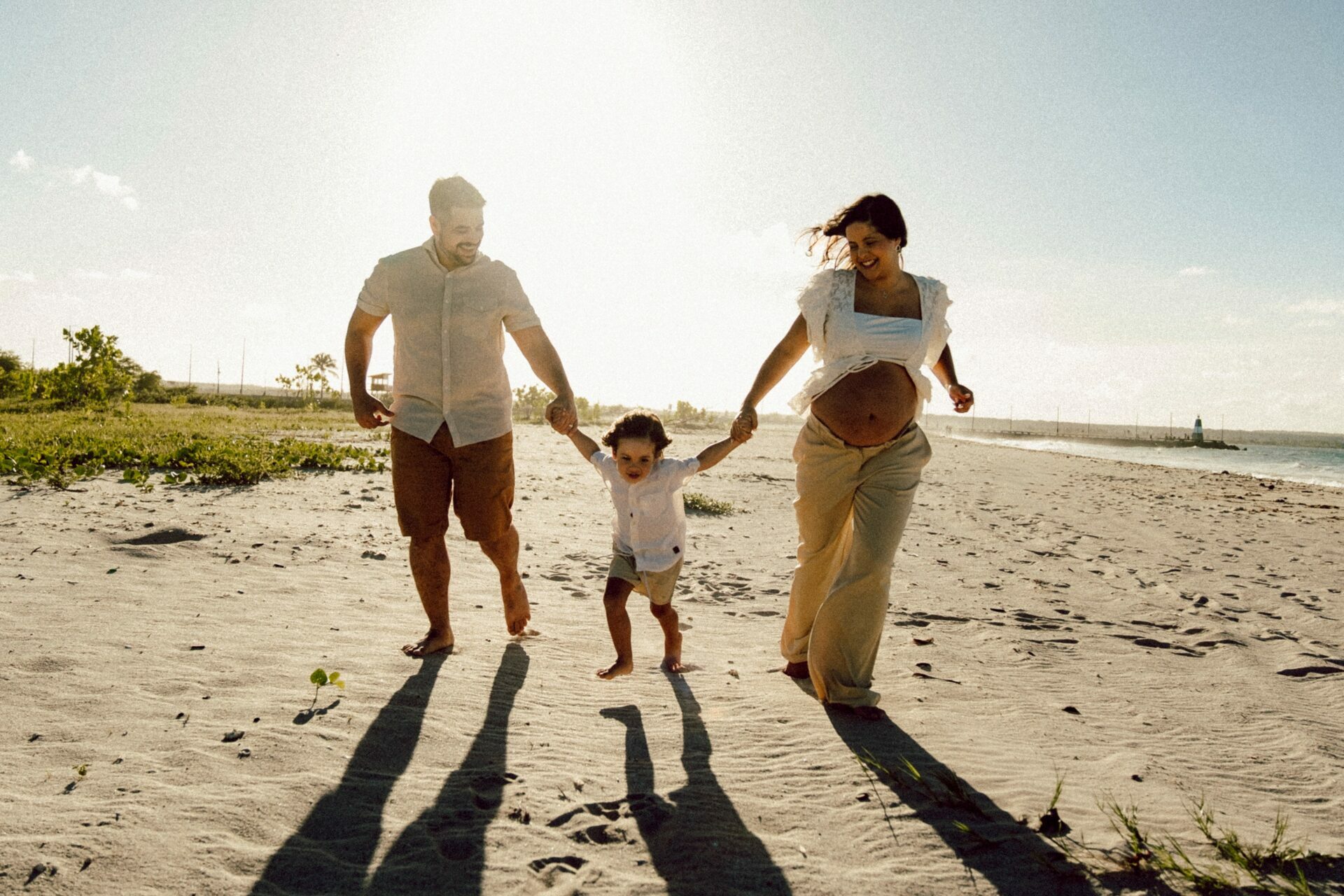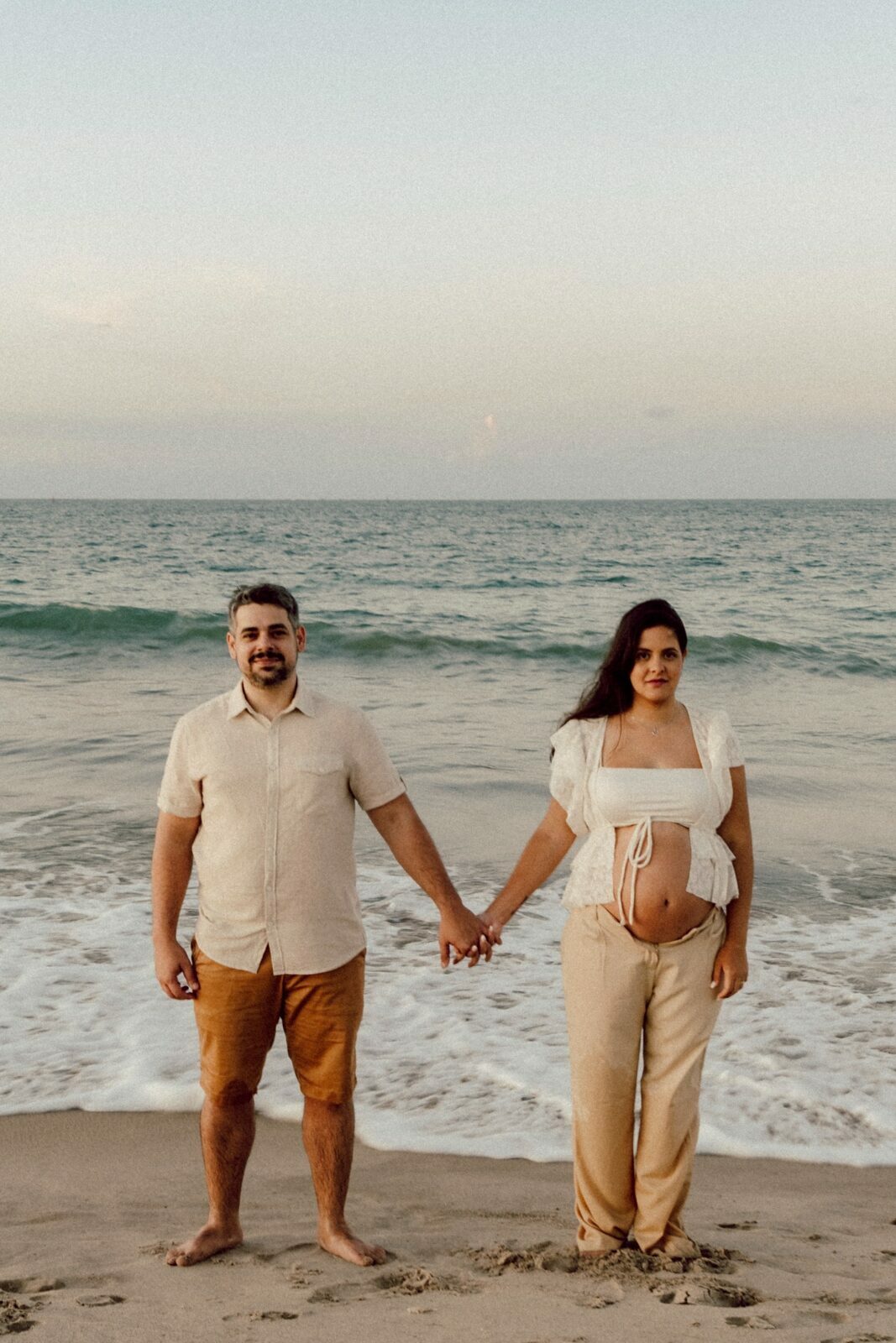Vindos de Portugal, atravessaram o Atlântico para rever a família, abraçar suas raízes e reencontrar o calor da nossa querida João Pessoa. E foi nesse cenário de mar calmo e céu infinito que eternizaram um dos momentos mais sublimes da vida: a espera por mais um filho.