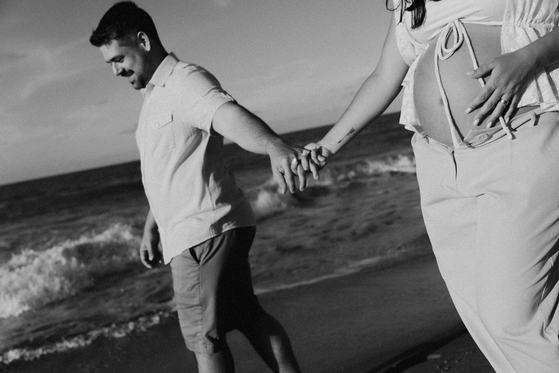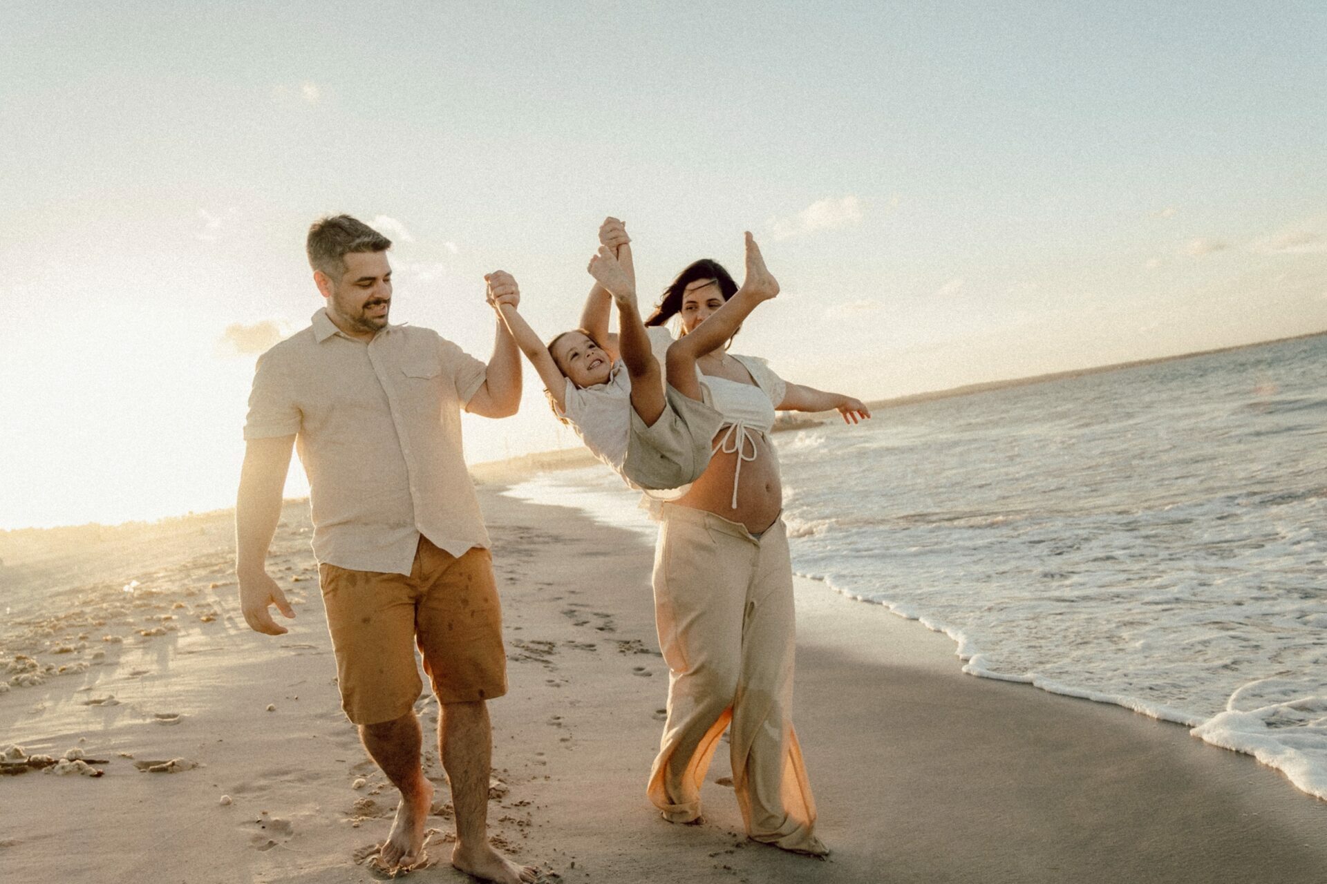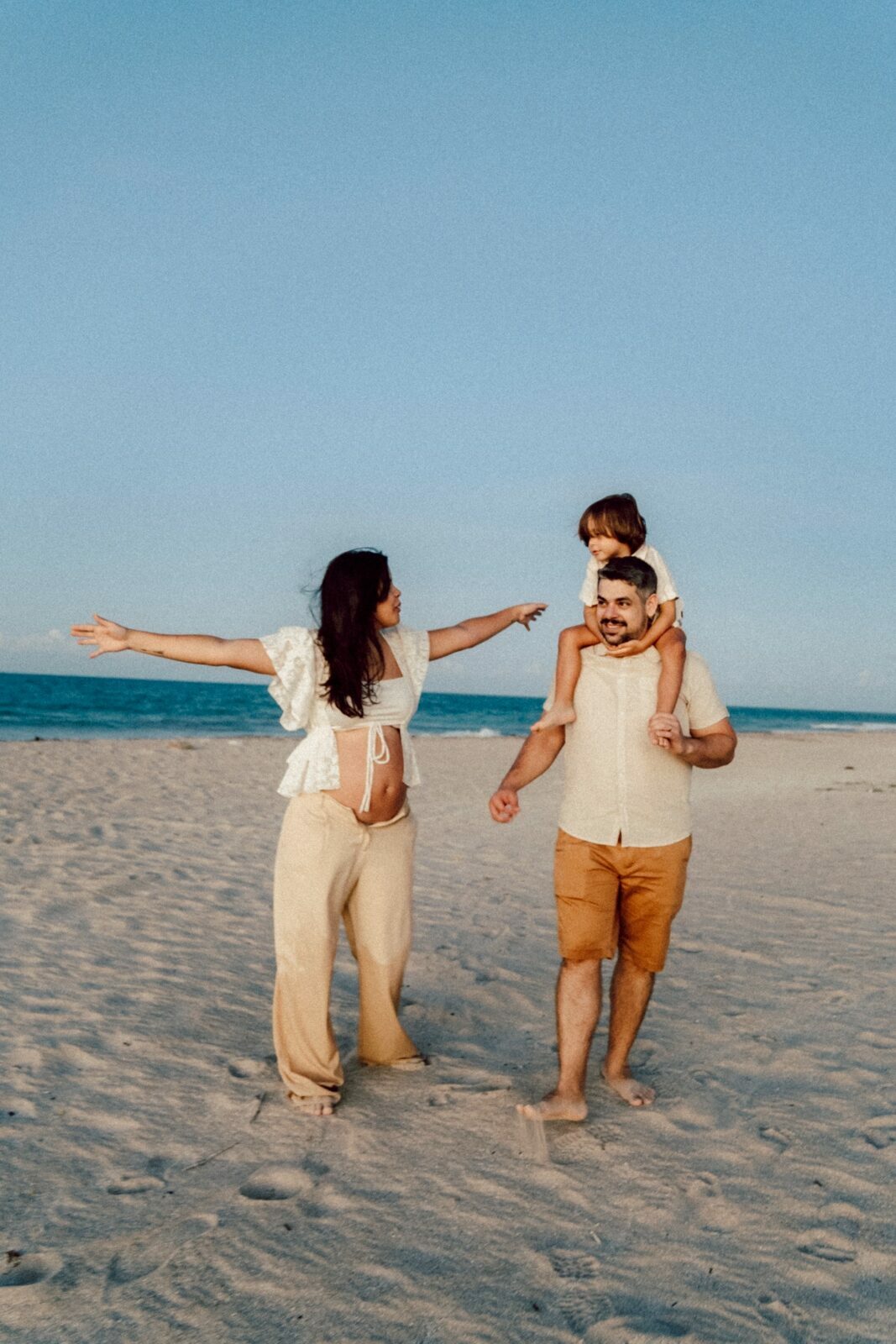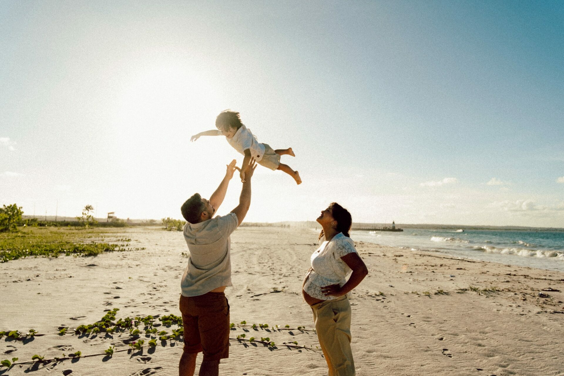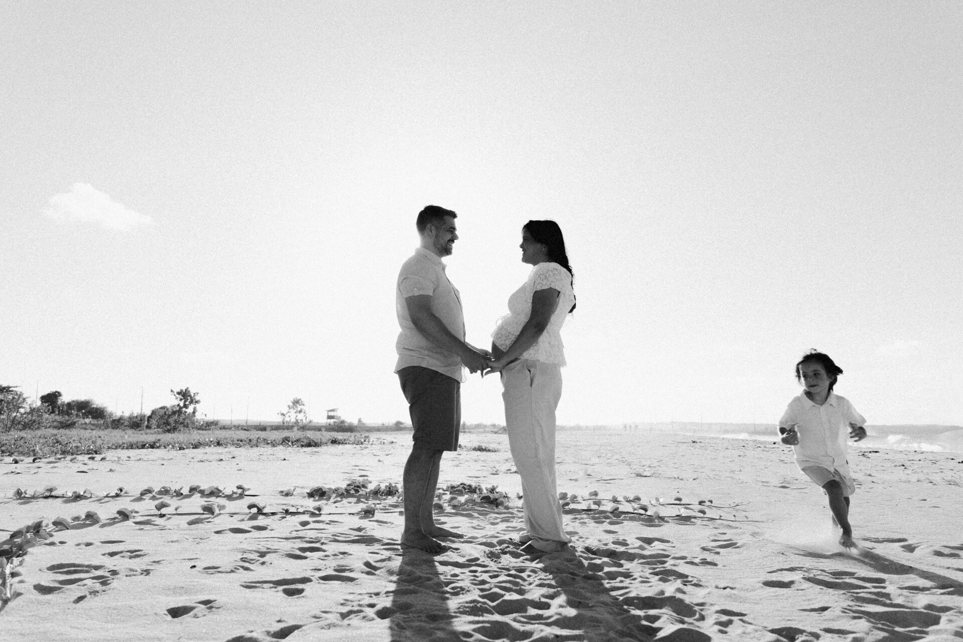 Vindos de Portugal, atravessaram o Atlântico para rever a família, abraçar suas raízes e reencontrar o calor da nossa querida João Pessoa. E foi nesse cenário de mar calmo e céu infinito que eternizaram um dos momentos mais sublimes da vida: a espera por mais um filho.