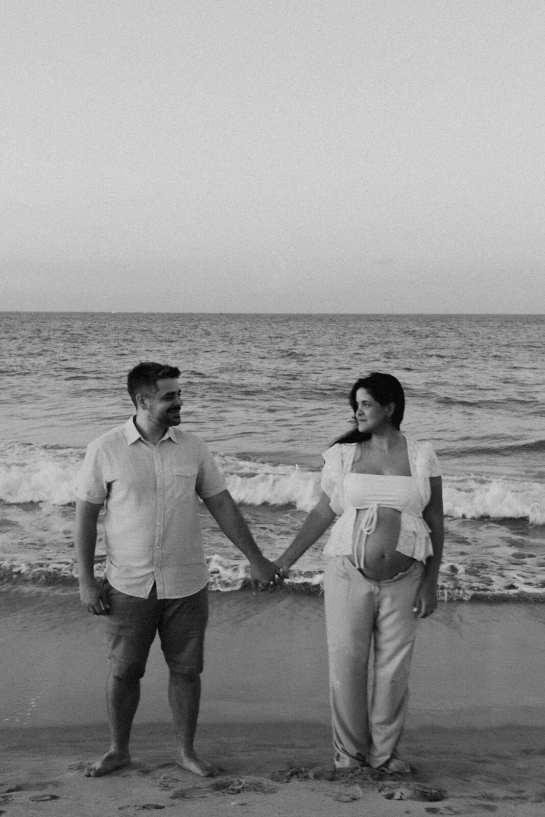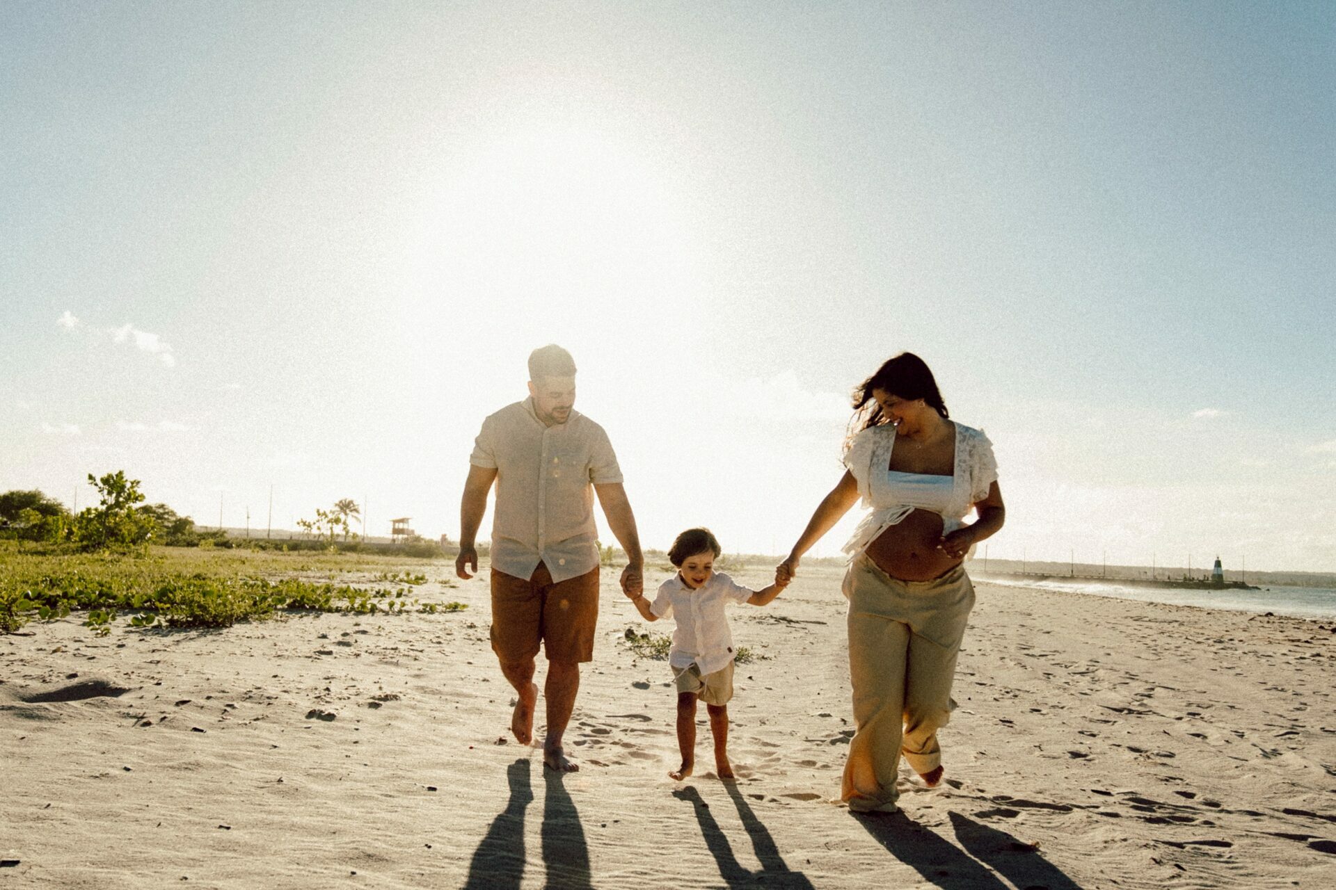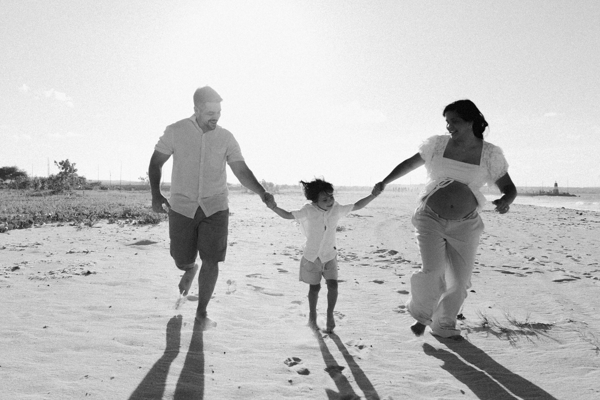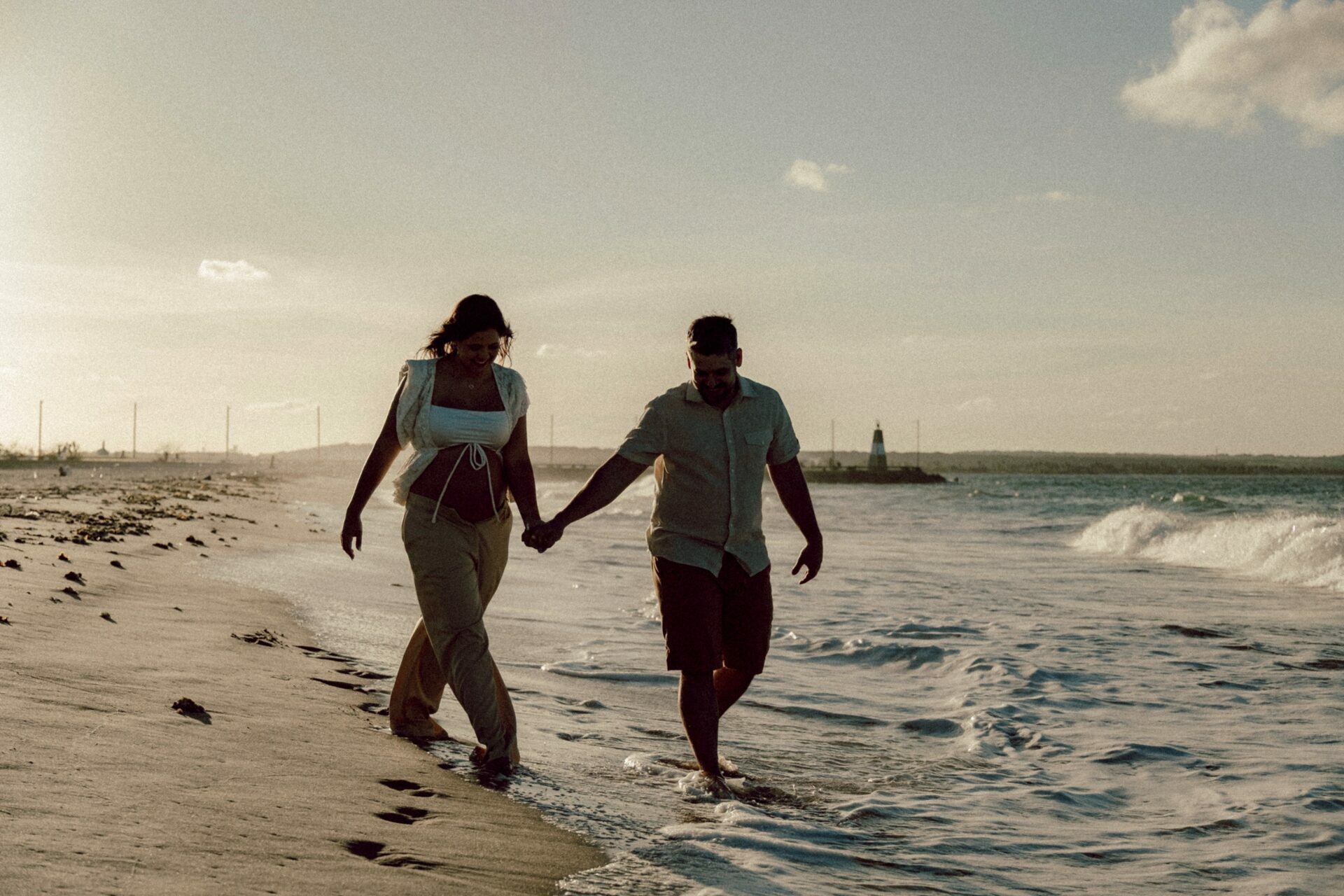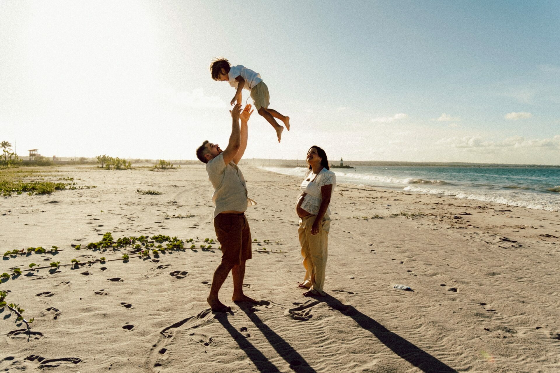 Vindos de Portugal, atravessaram o Atlântico para rever a família, abraçar suas raízes e reencontrar o calor da nossa querida João Pessoa. E foi nesse cenário de mar calmo e céu infinito que eternizaram um dos momentos mais sublimes da vida: a espera por mais um filho.