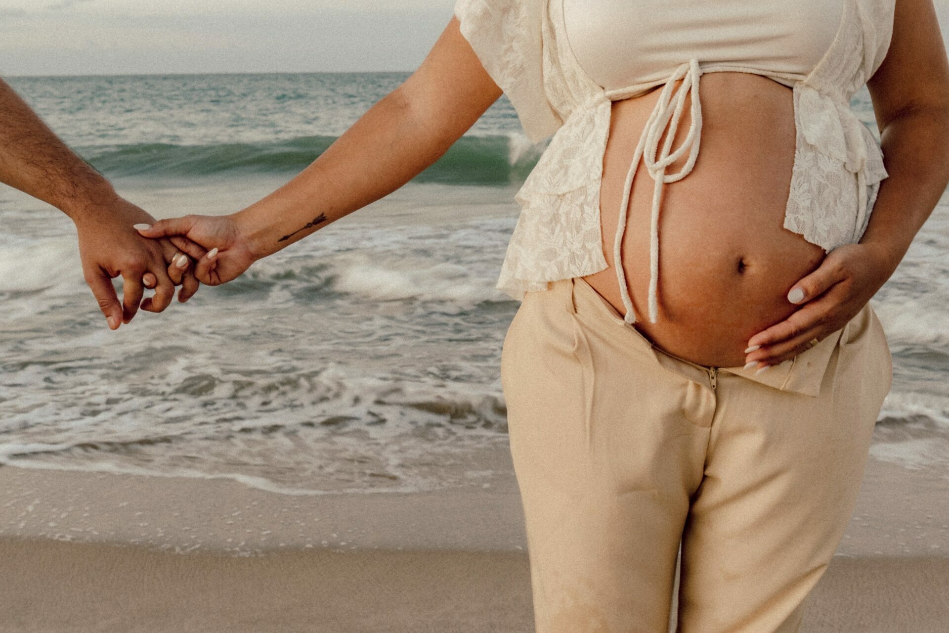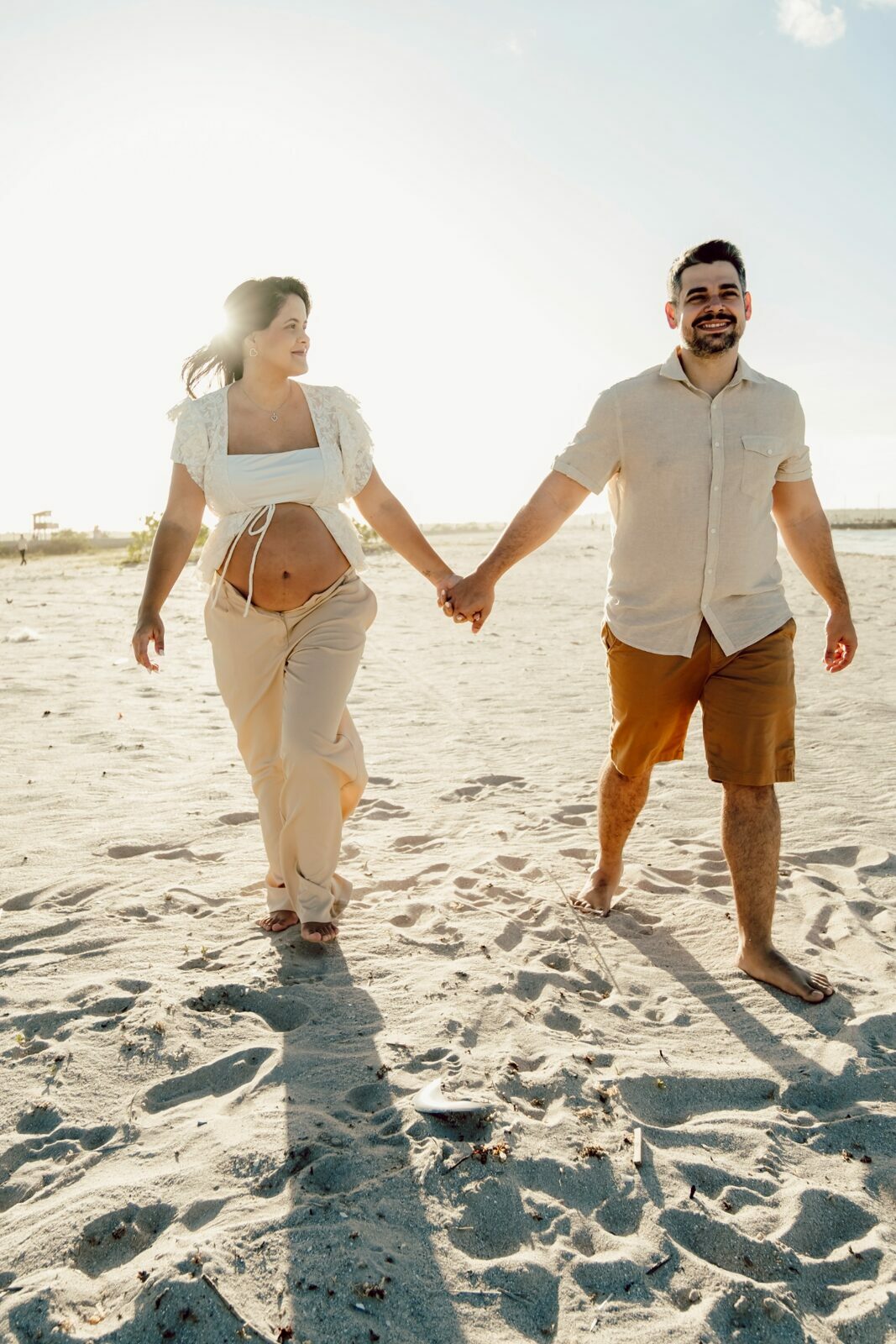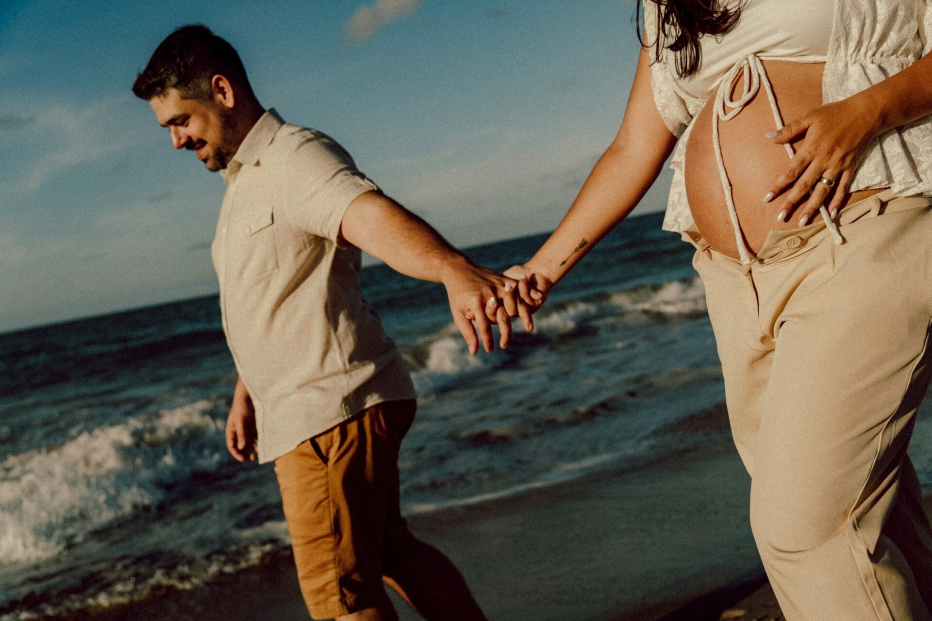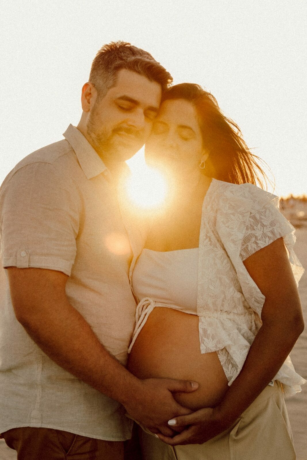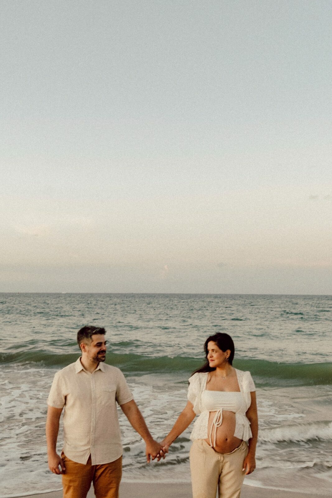 Vindos de Portugal, atravessaram o Atlântico para rever a família, abraçar suas raízes e reencontrar o calor da nossa querida João Pessoa. E foi nesse cenário de mar calmo e céu infinito que eternizaram um dos momentos mais sublimes da vida: a espera por mais um filho.
