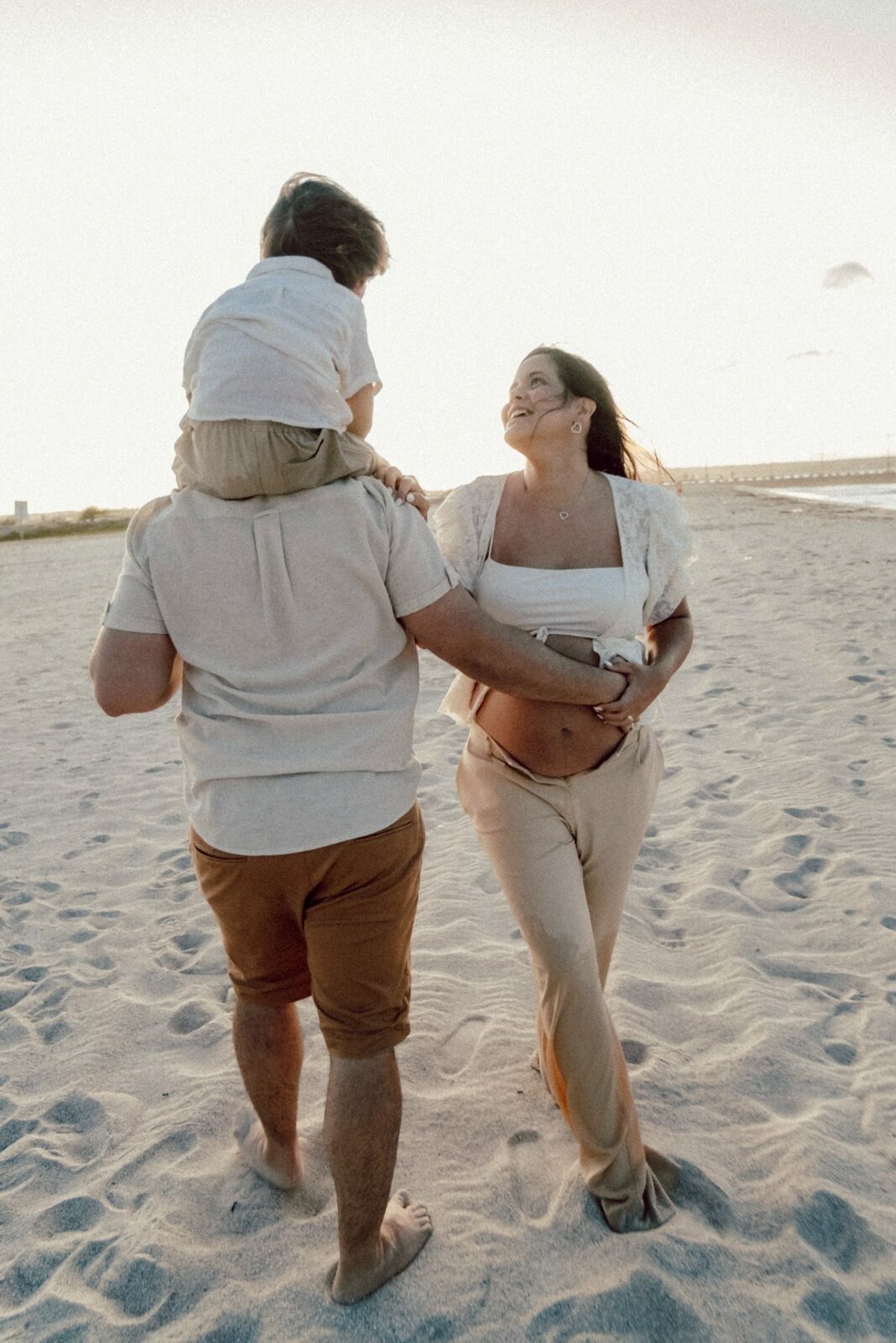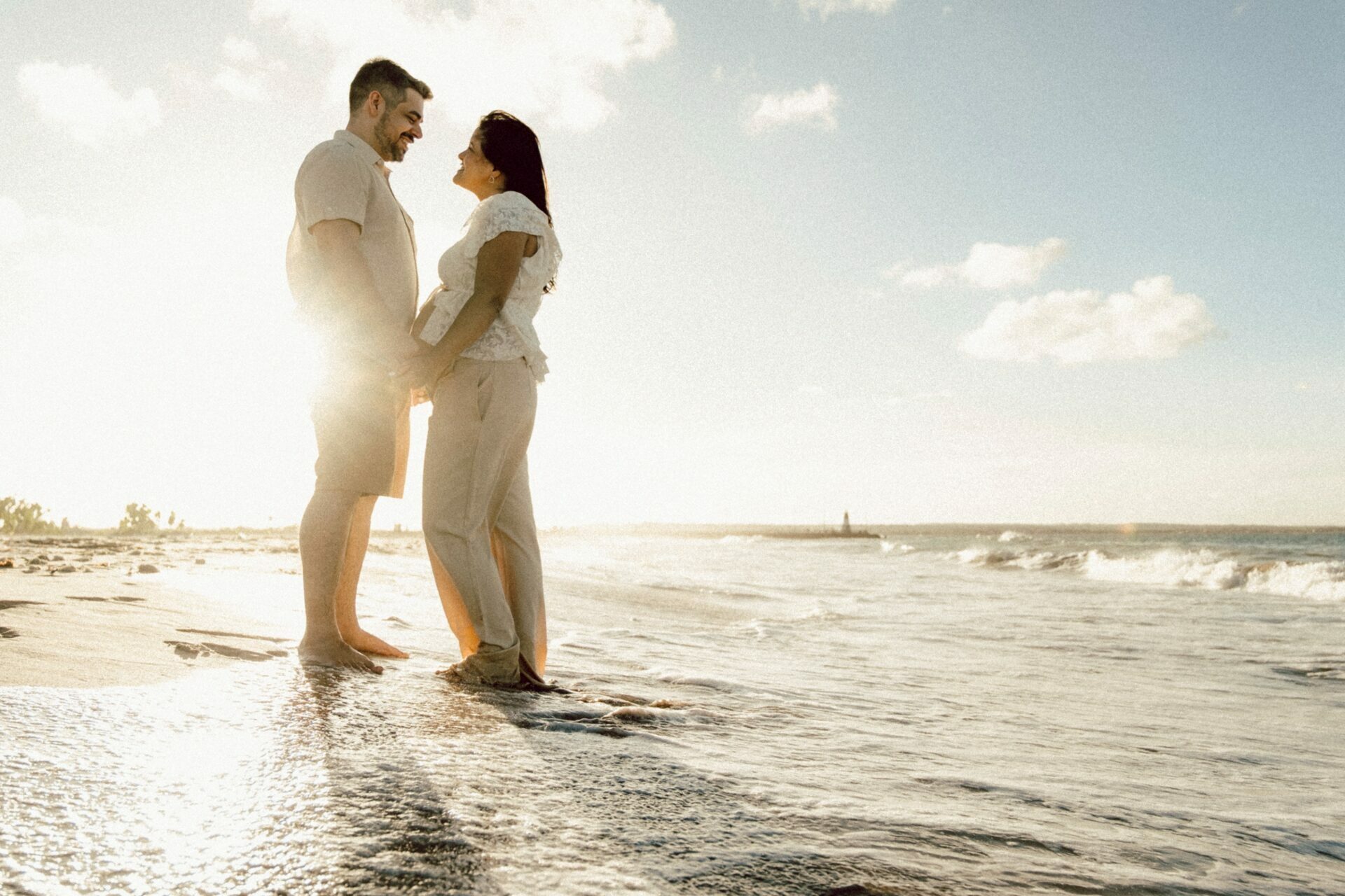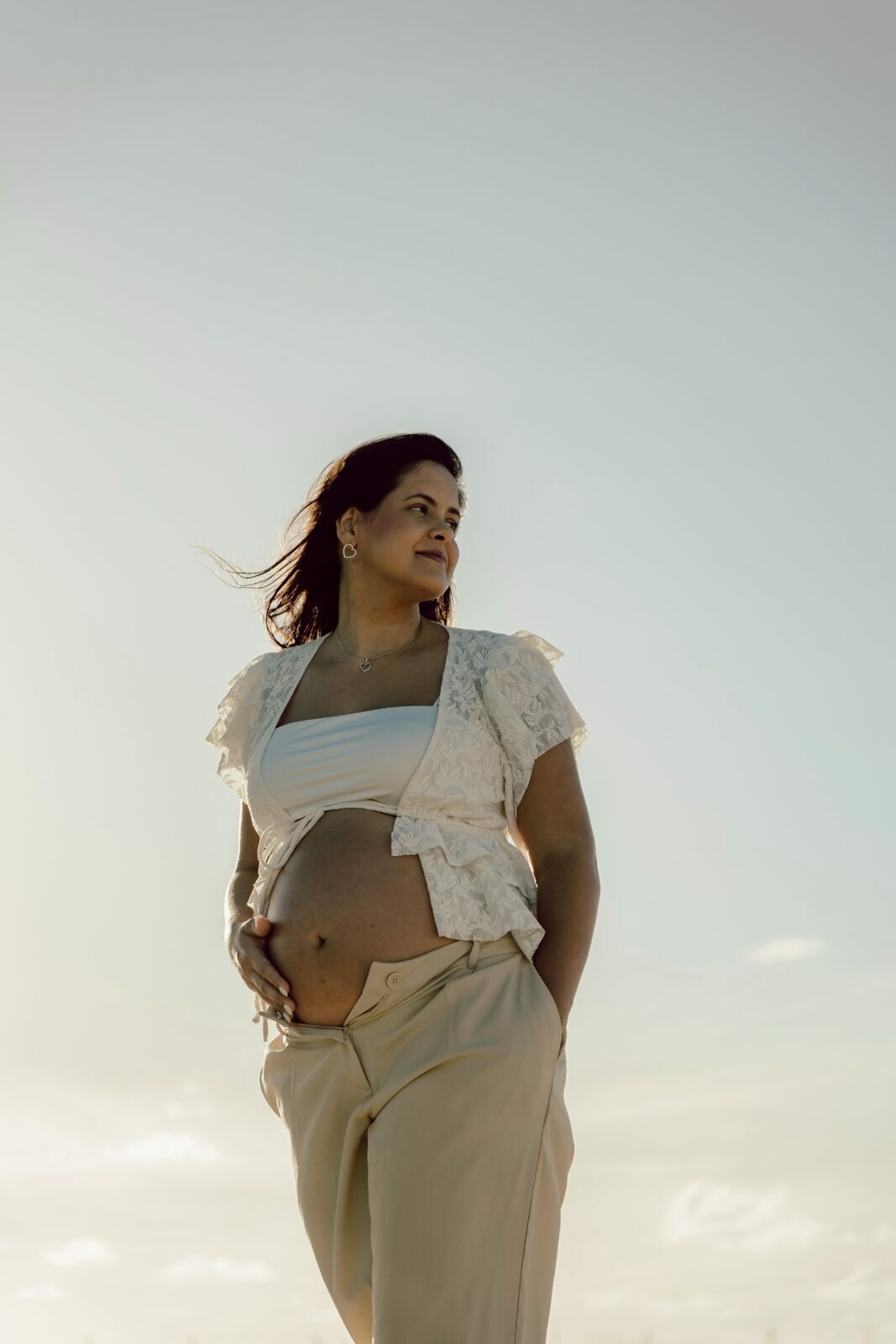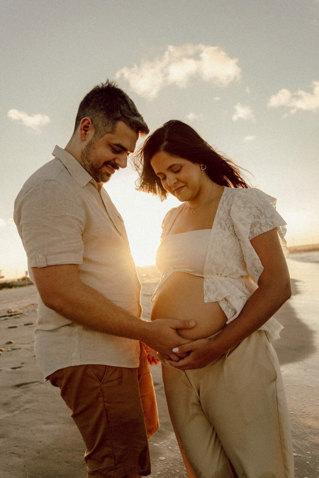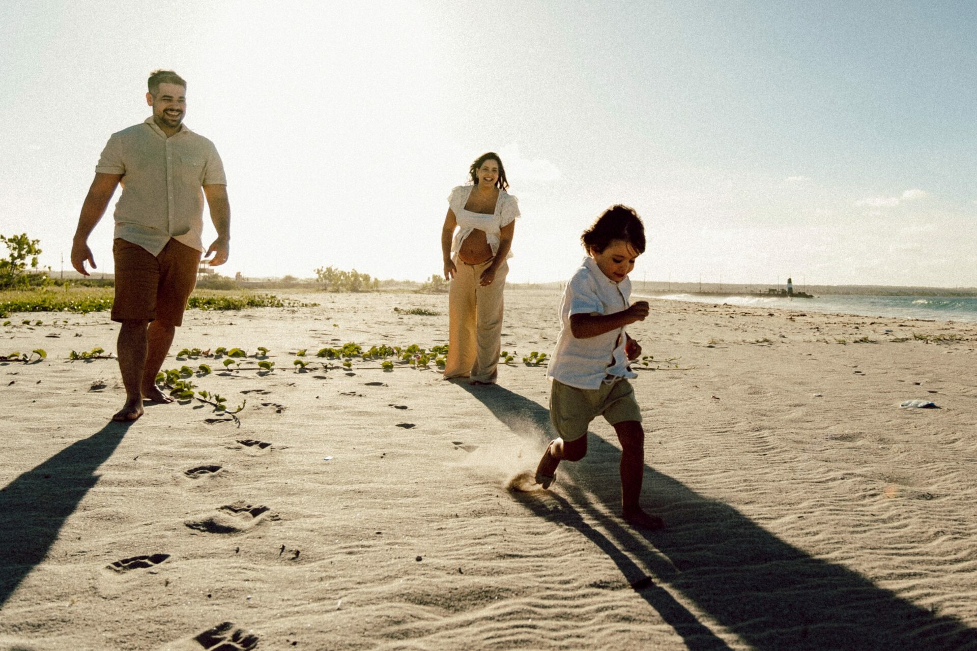 Vindos de Portugal, atravessaram o Atlântico para rever a família, abraçar suas raízes e reencontrar o calor da nossa querida João Pessoa. E foi nesse cenário de mar calmo e céu infinito que eternizaram um dos momentos mais sublimes da vida: a espera por mais um filho.