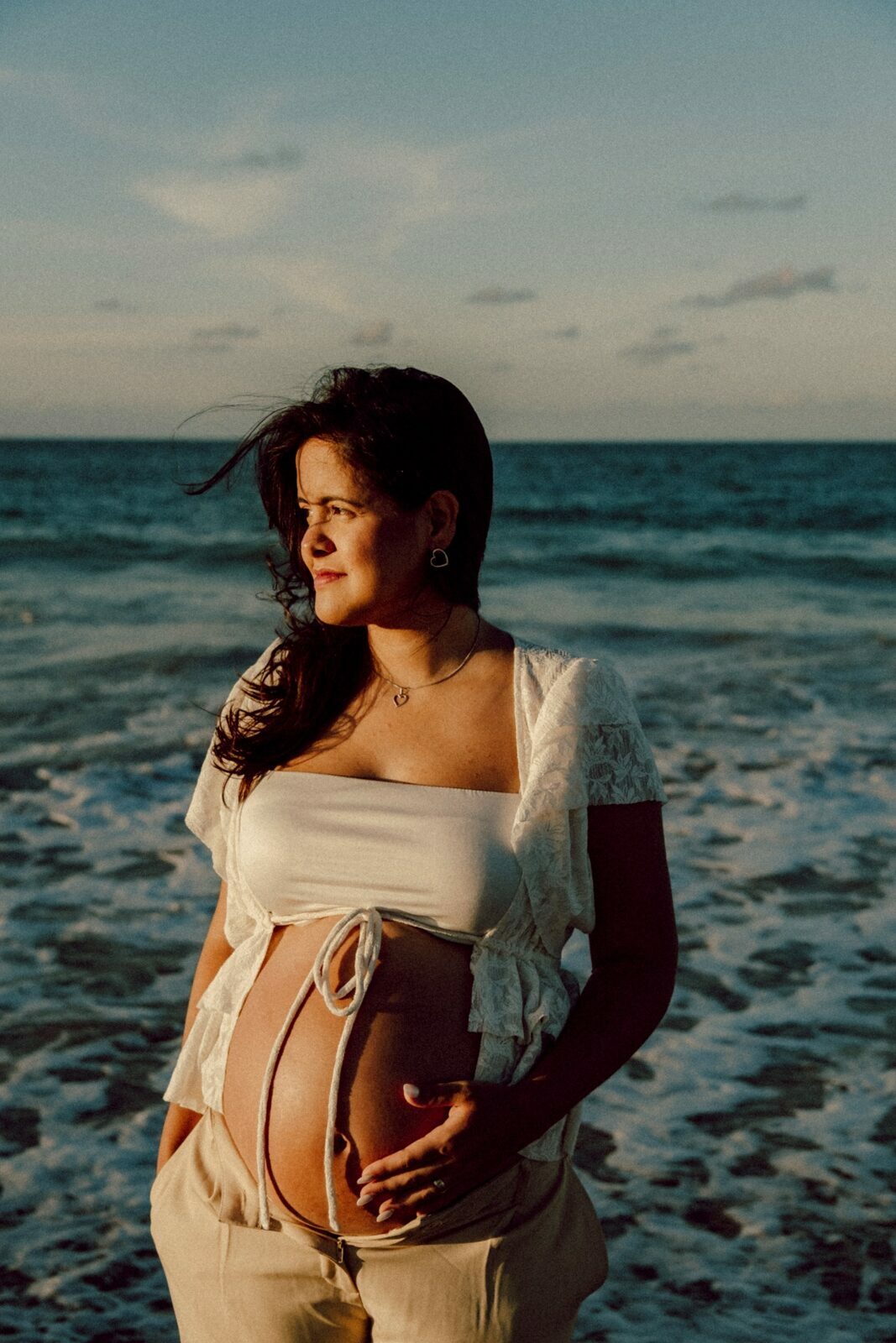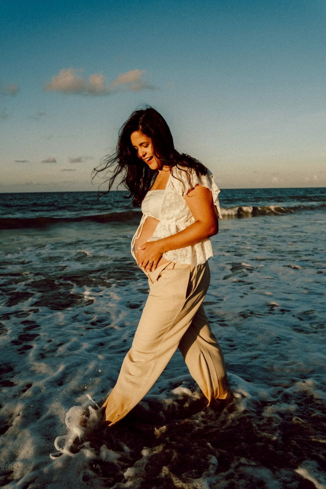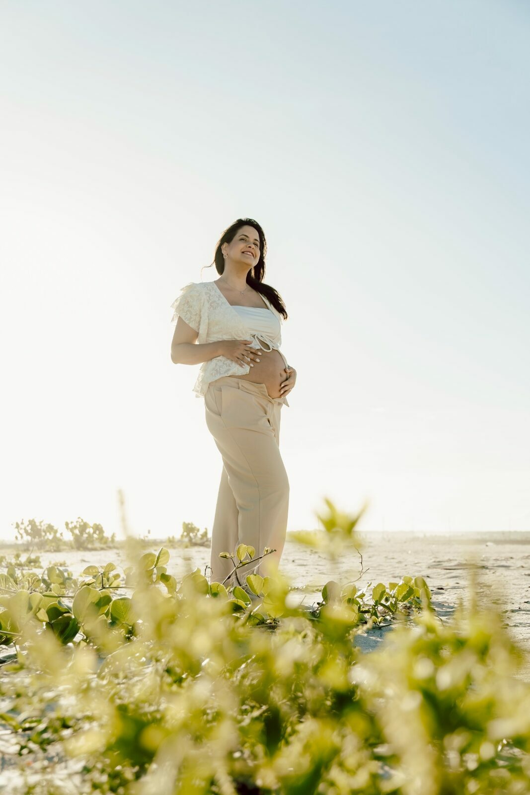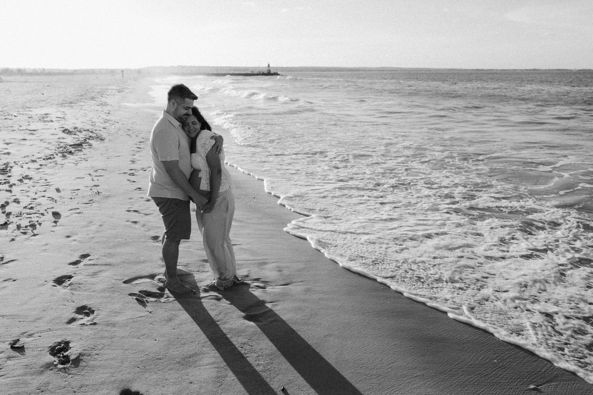 Vindos de Portugal, atravessaram o Atlântico para rever a família, abraçar suas raízes e reencontrar o calor da nossa querida João Pessoa. E foi nesse cenário de mar calmo e céu infinito que eternizaram um dos momentos mais sublimes da vida: a espera por mais um filho.