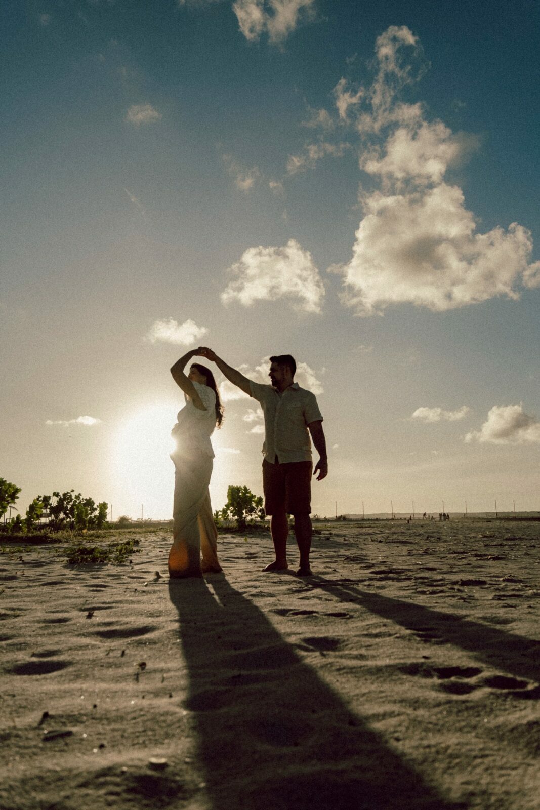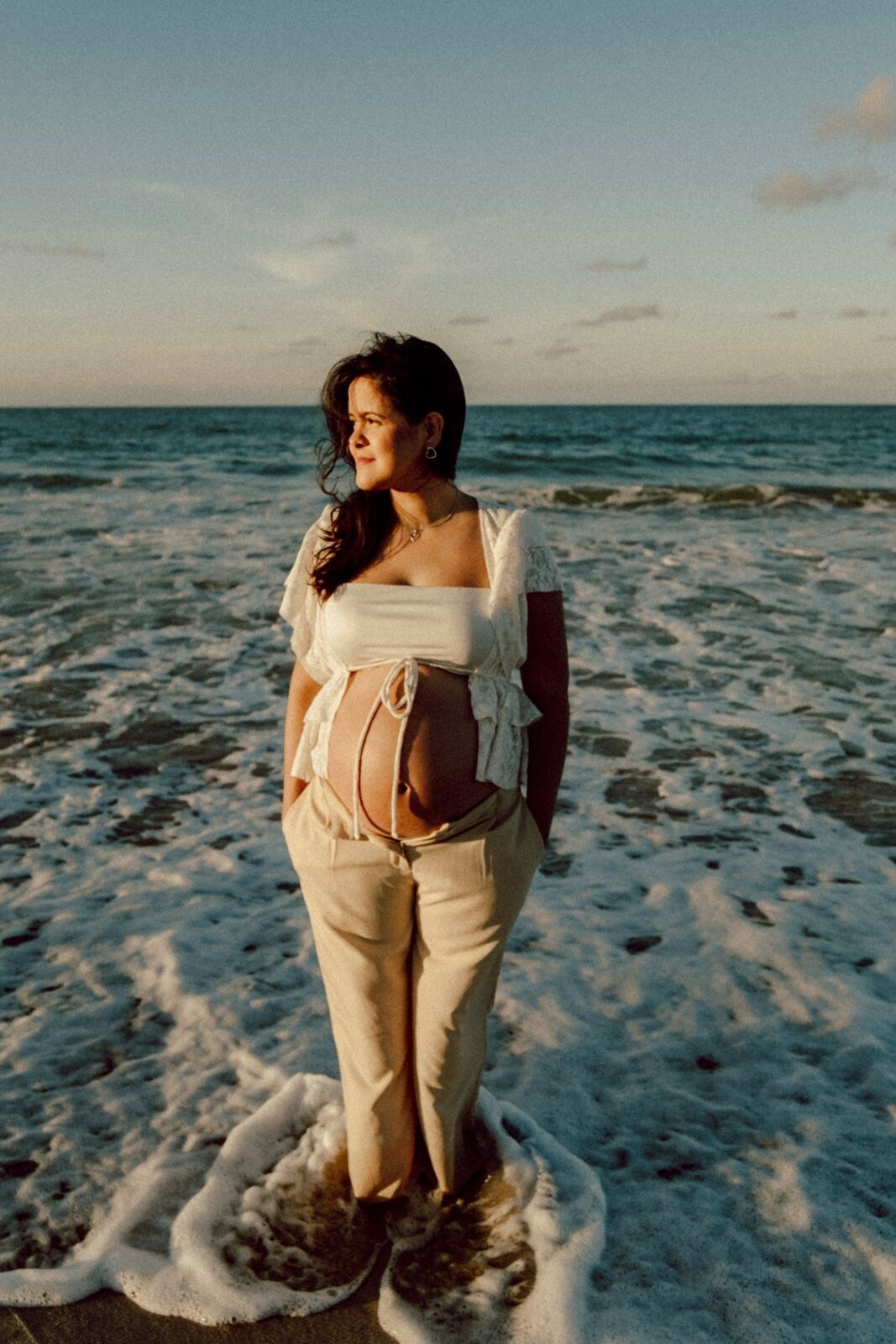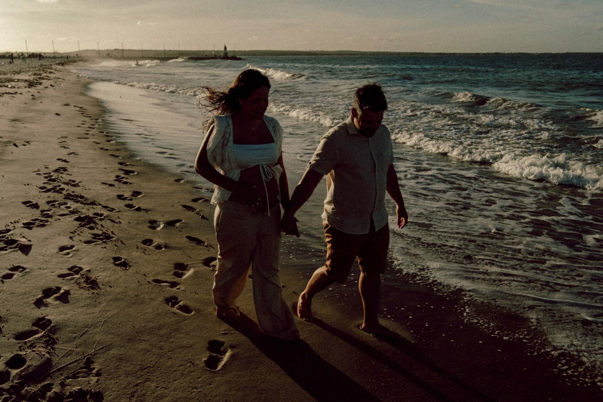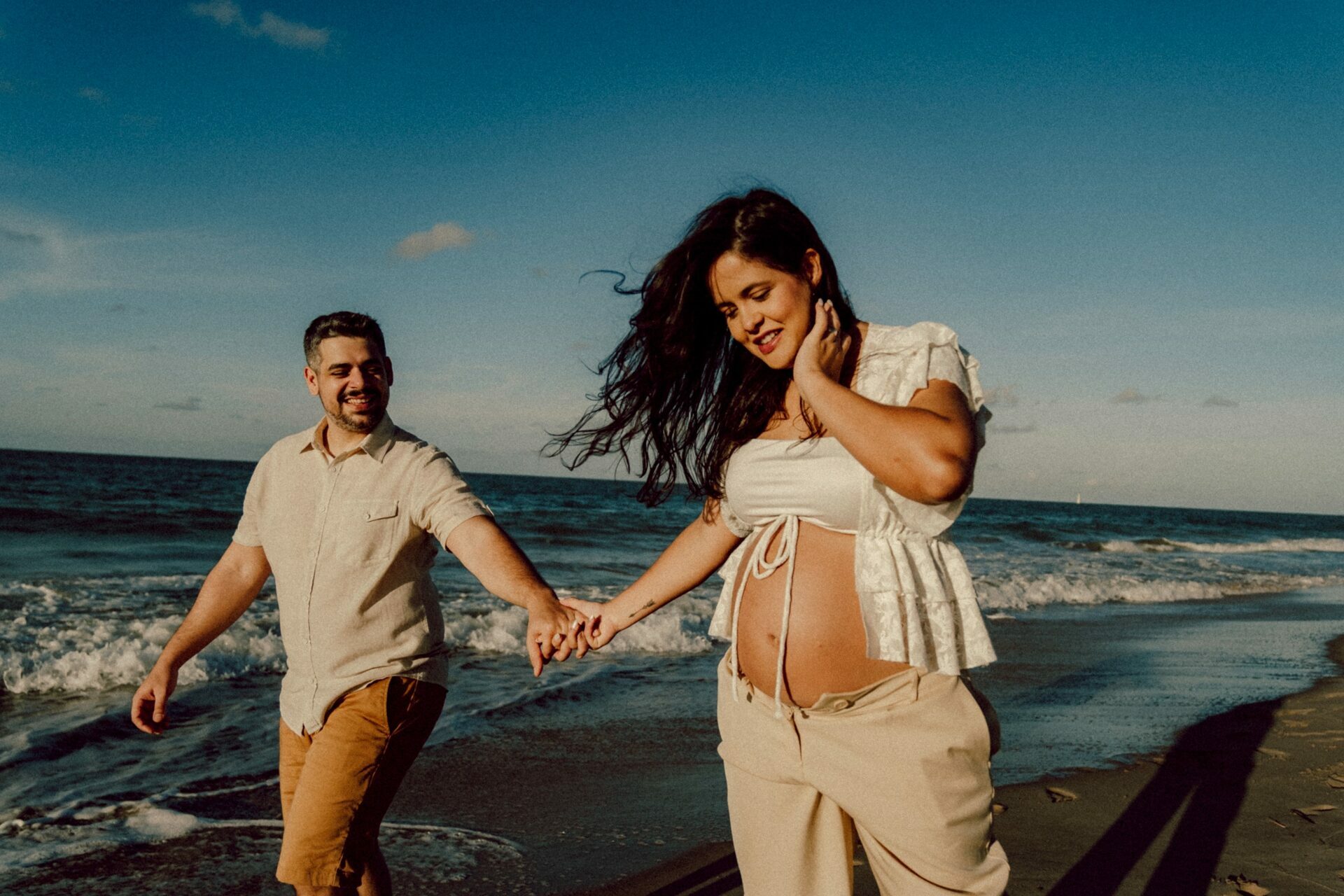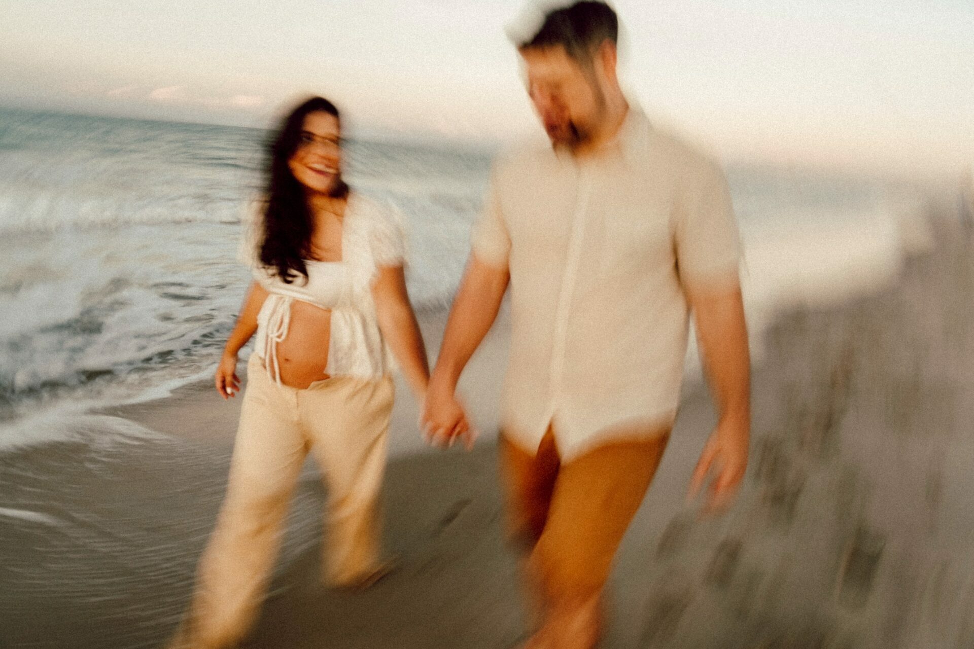 Vindos de Portugal, atravessaram o Atlântico para rever a família, abraçar suas raízes e reencontrar o calor da nossa querida João Pessoa. E foi nesse cenário de mar calmo e céu infinito que eternizaram um dos momentos mais sublimes da vida: a espera por mais um filho.