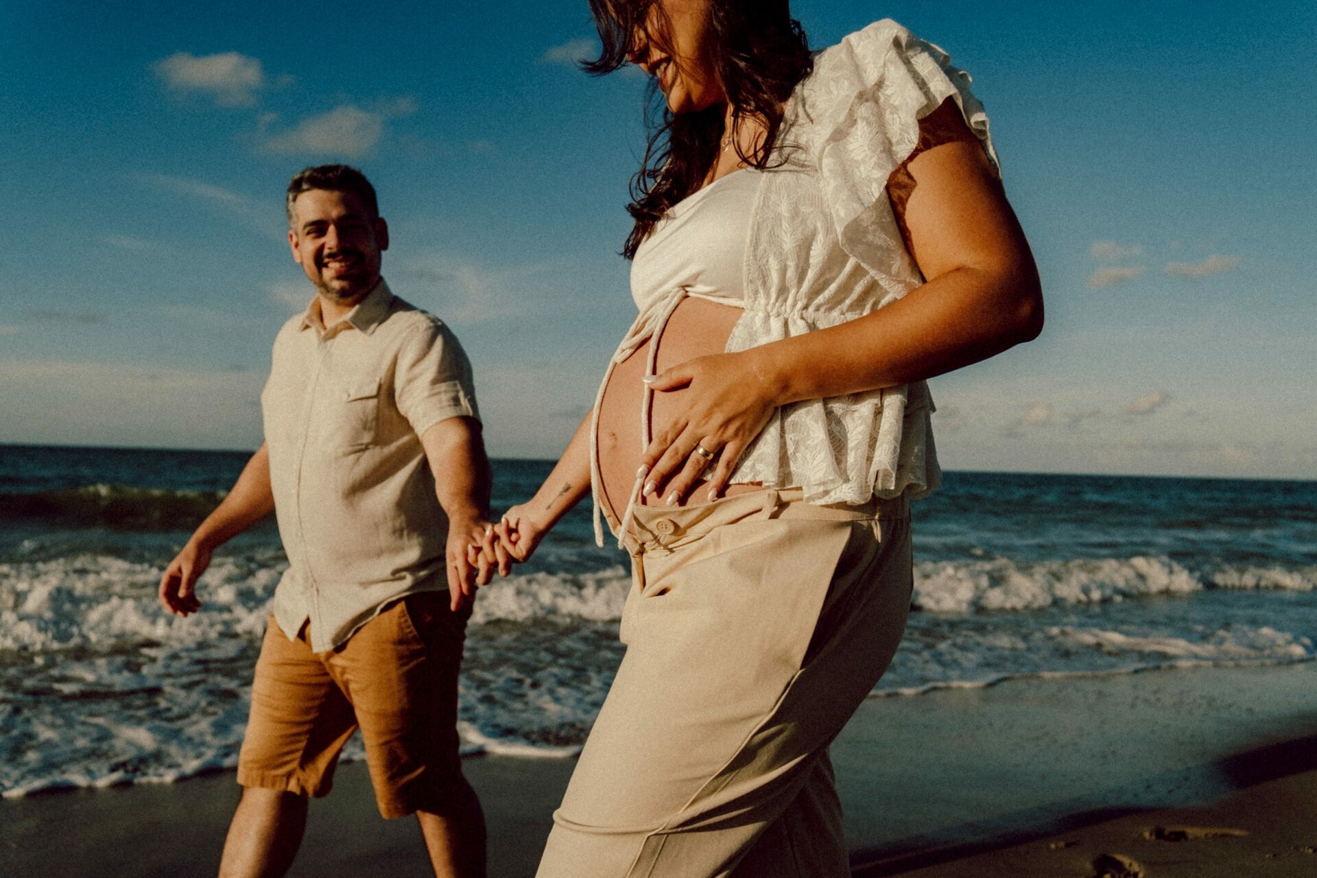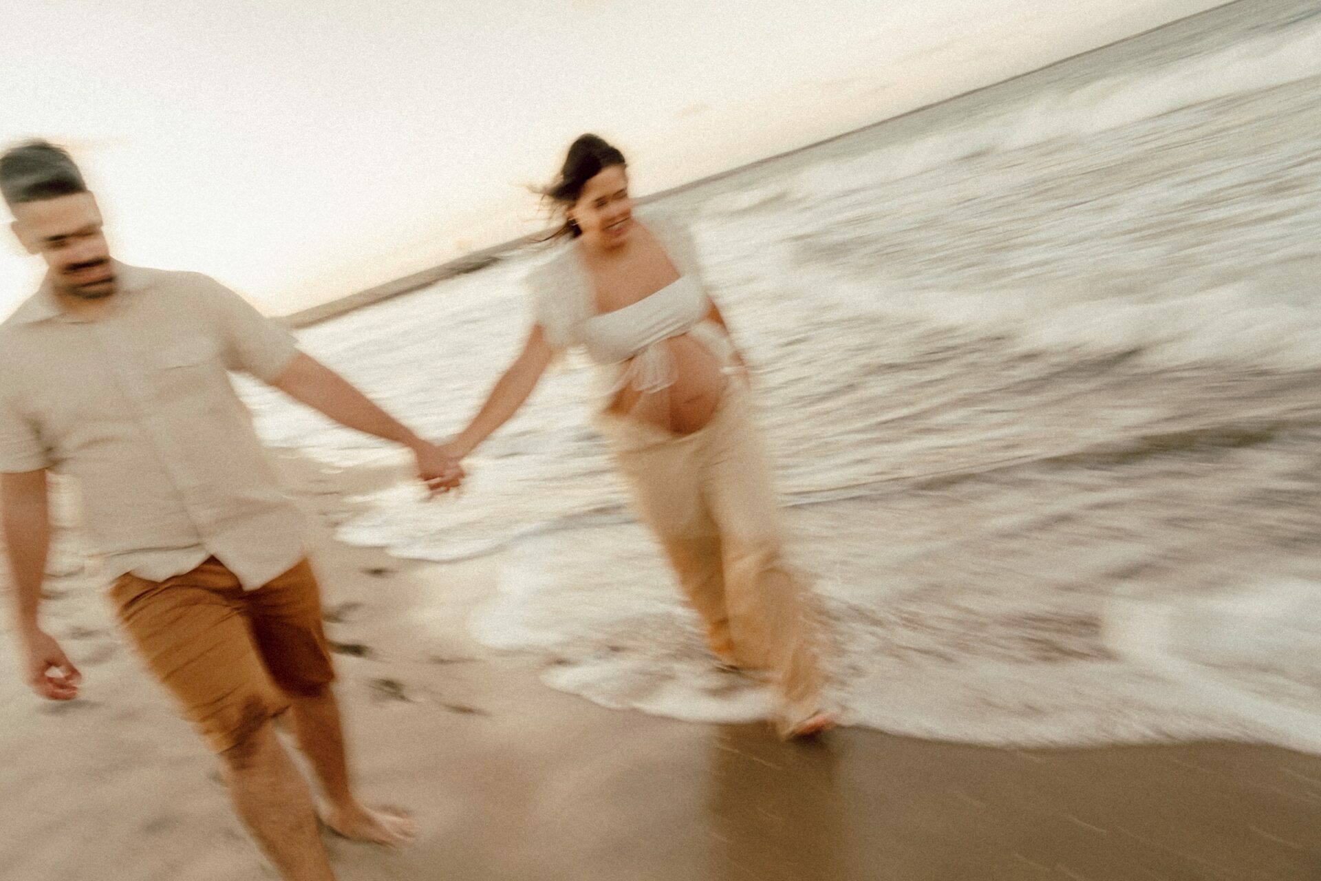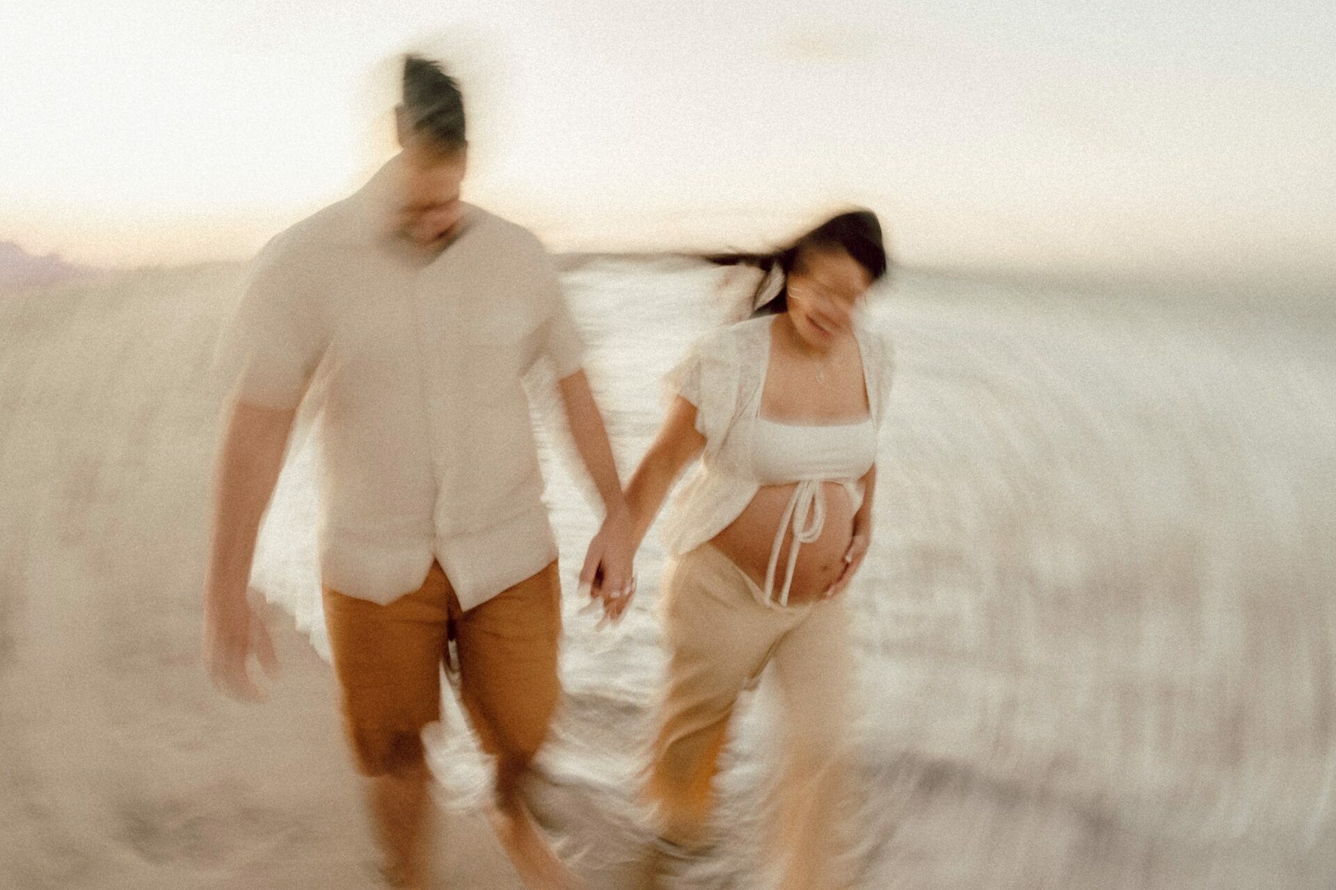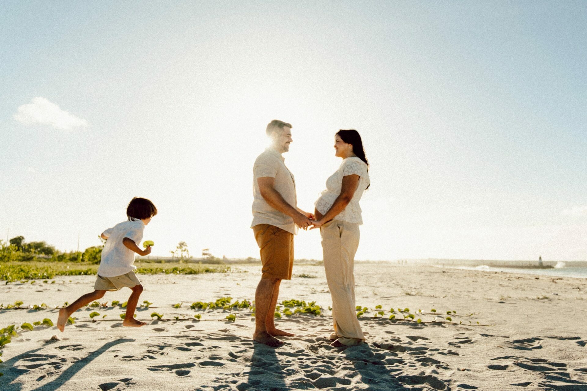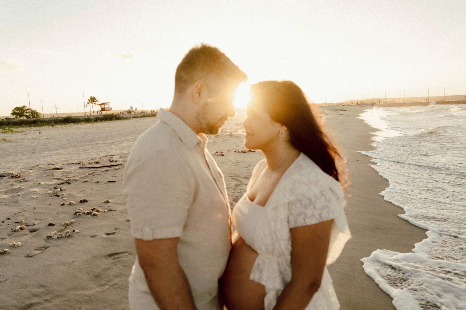 Vindos de Portugal, atravessaram o Atlântico para rever a família, abraçar suas raízes e reencontrar o calor da nossa querida João Pessoa. E foi nesse cenário de mar calmo e céu infinito que eternizaram um dos momentos mais sublimes da vida: a espera por mais um filho.
