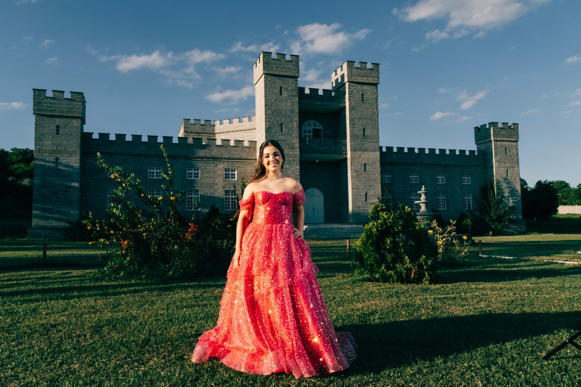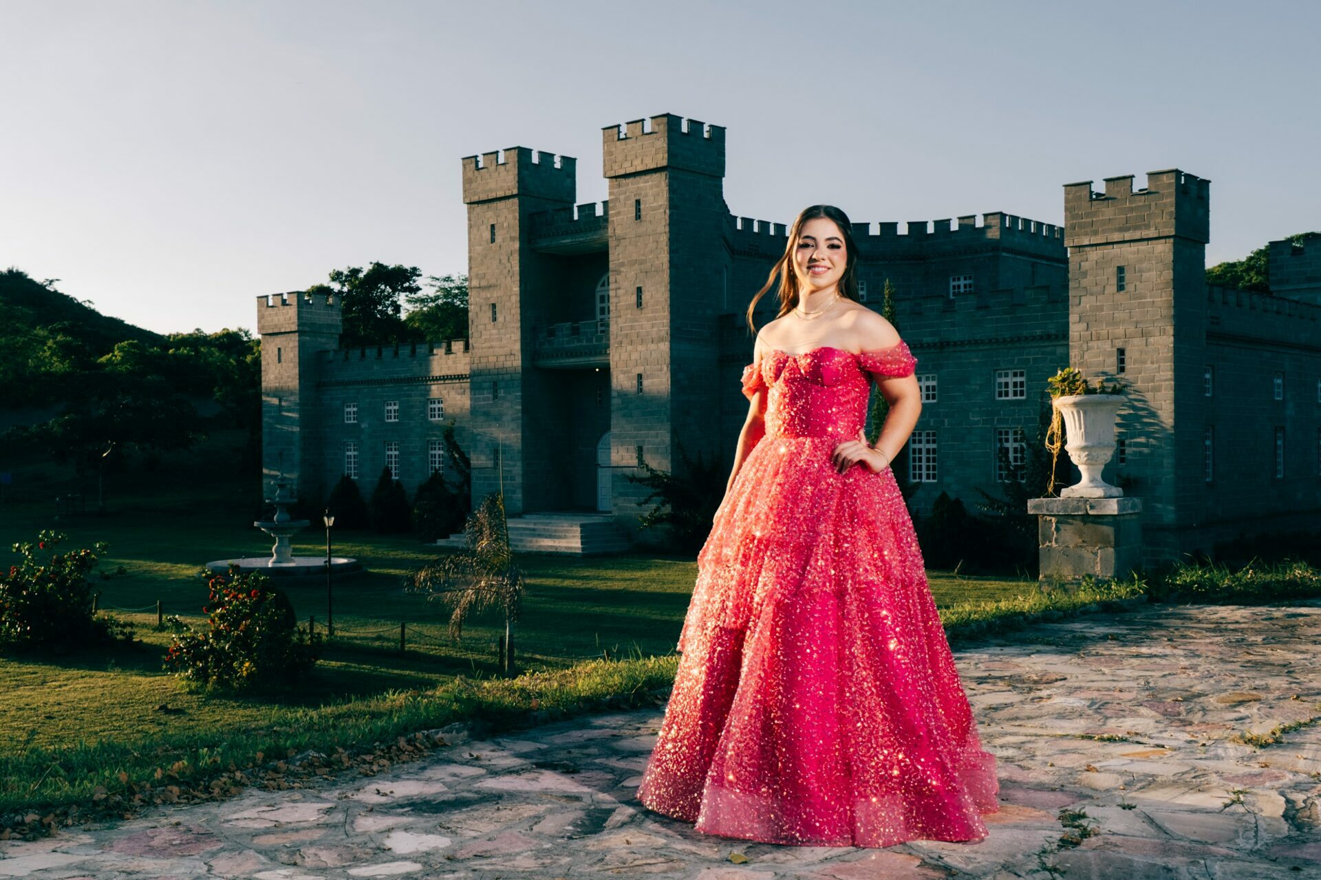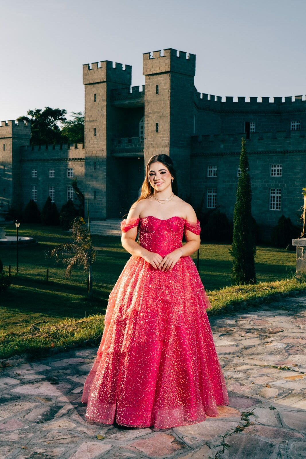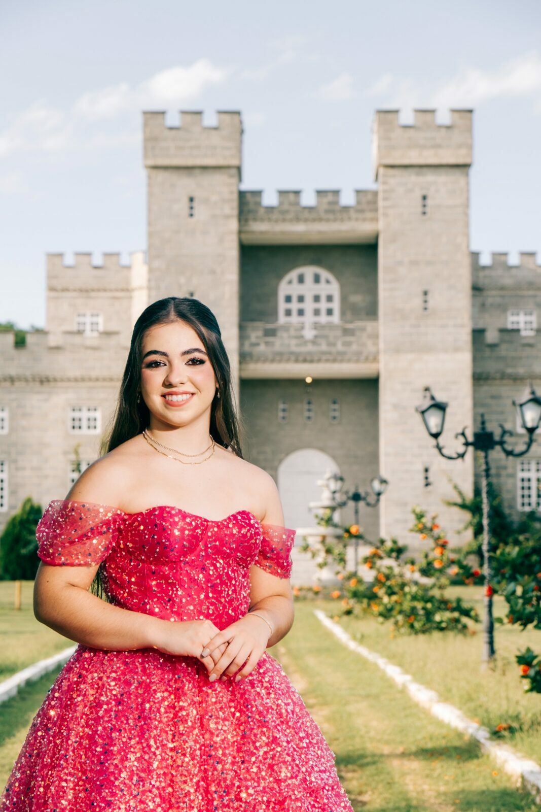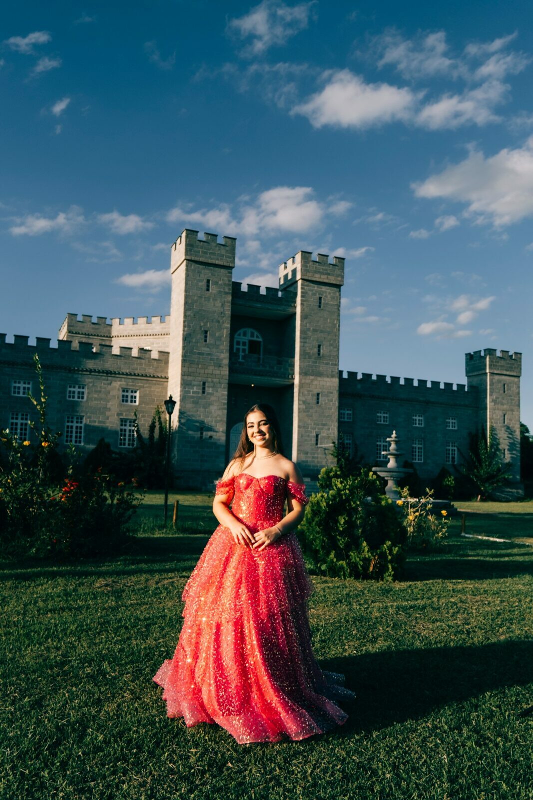 O ensaio de 15 anos de Maria Júlia foi um verdadeiro encontro entre sonho e realidade. Em um cenário encantador — digno de contos de princesa — o imponente Castelo da Torre se transformou no palco perfeito para celebrar essa fase tão especial da vida.