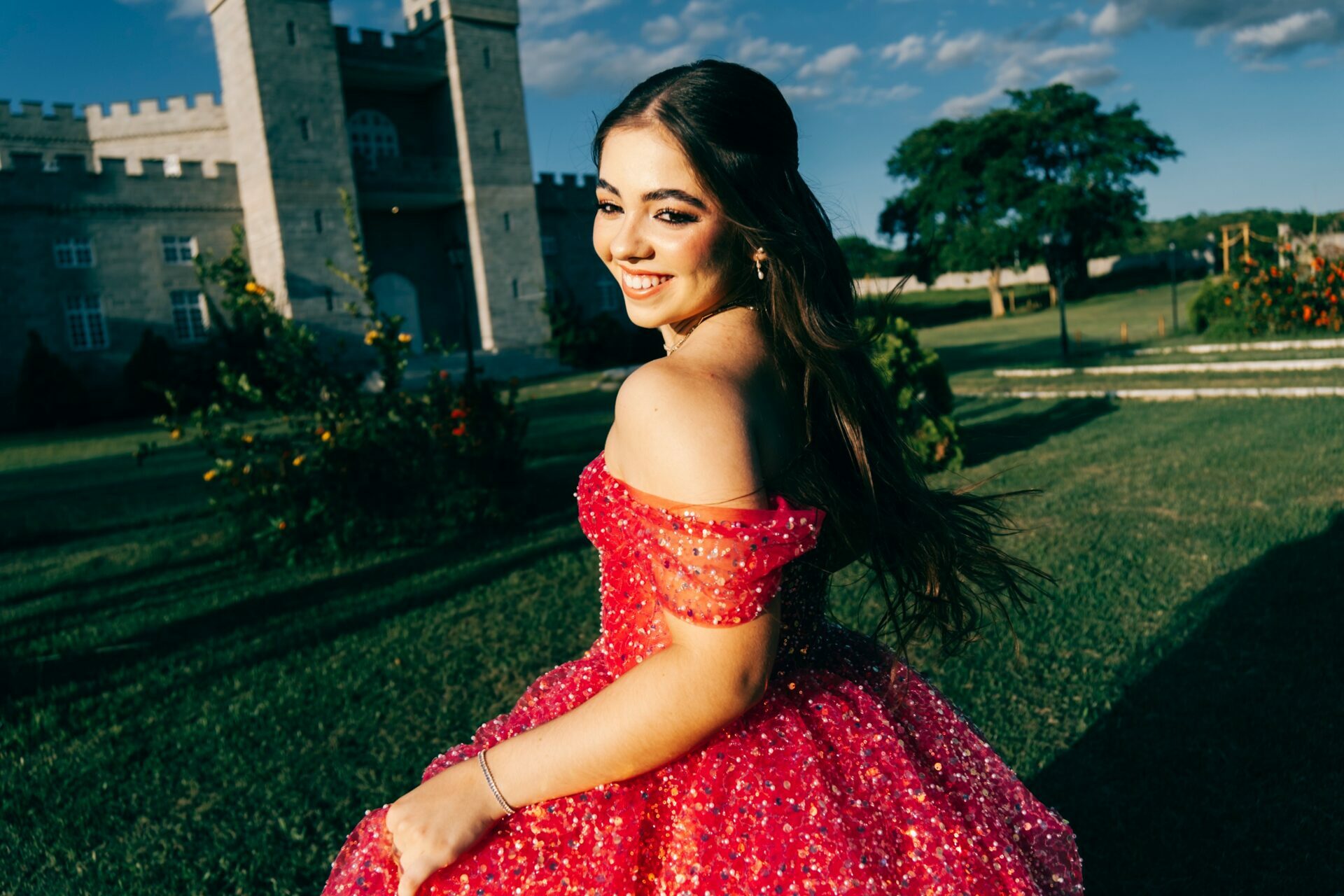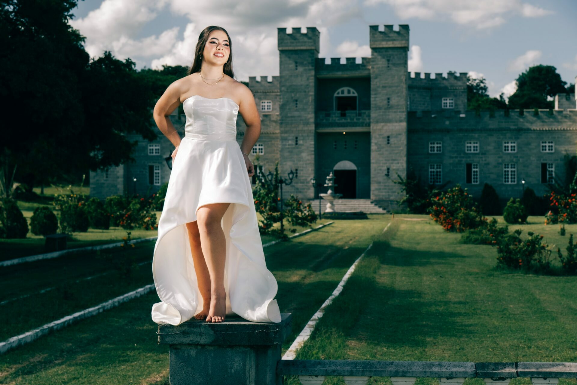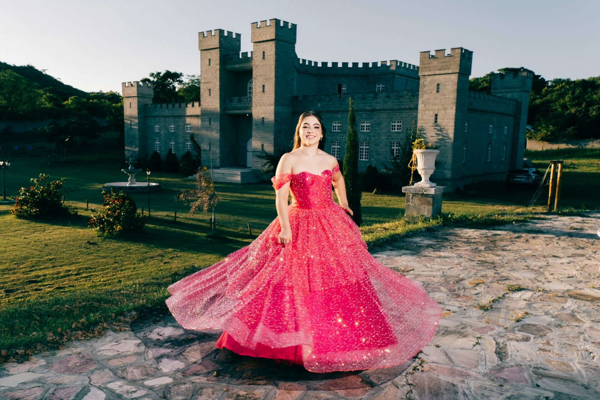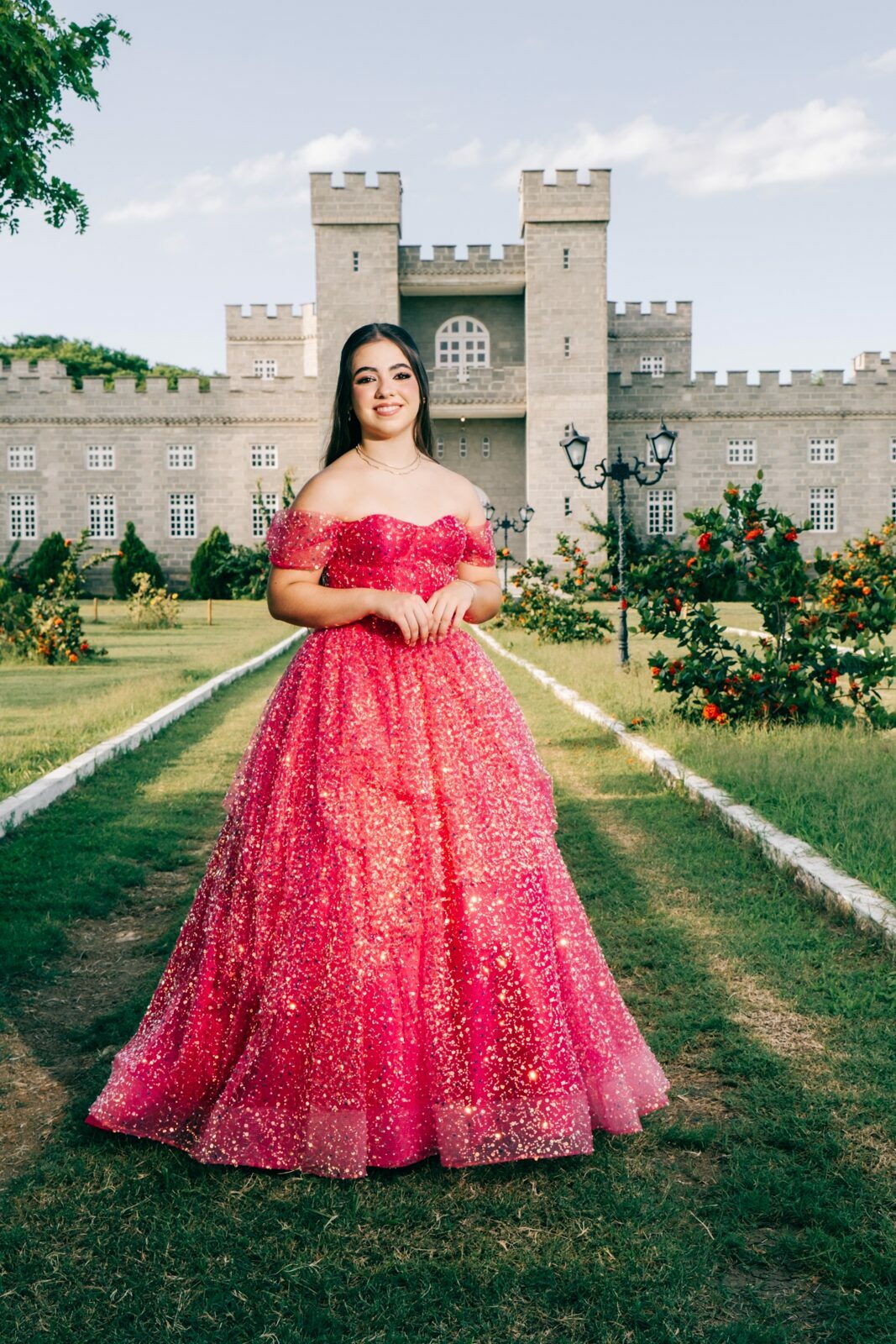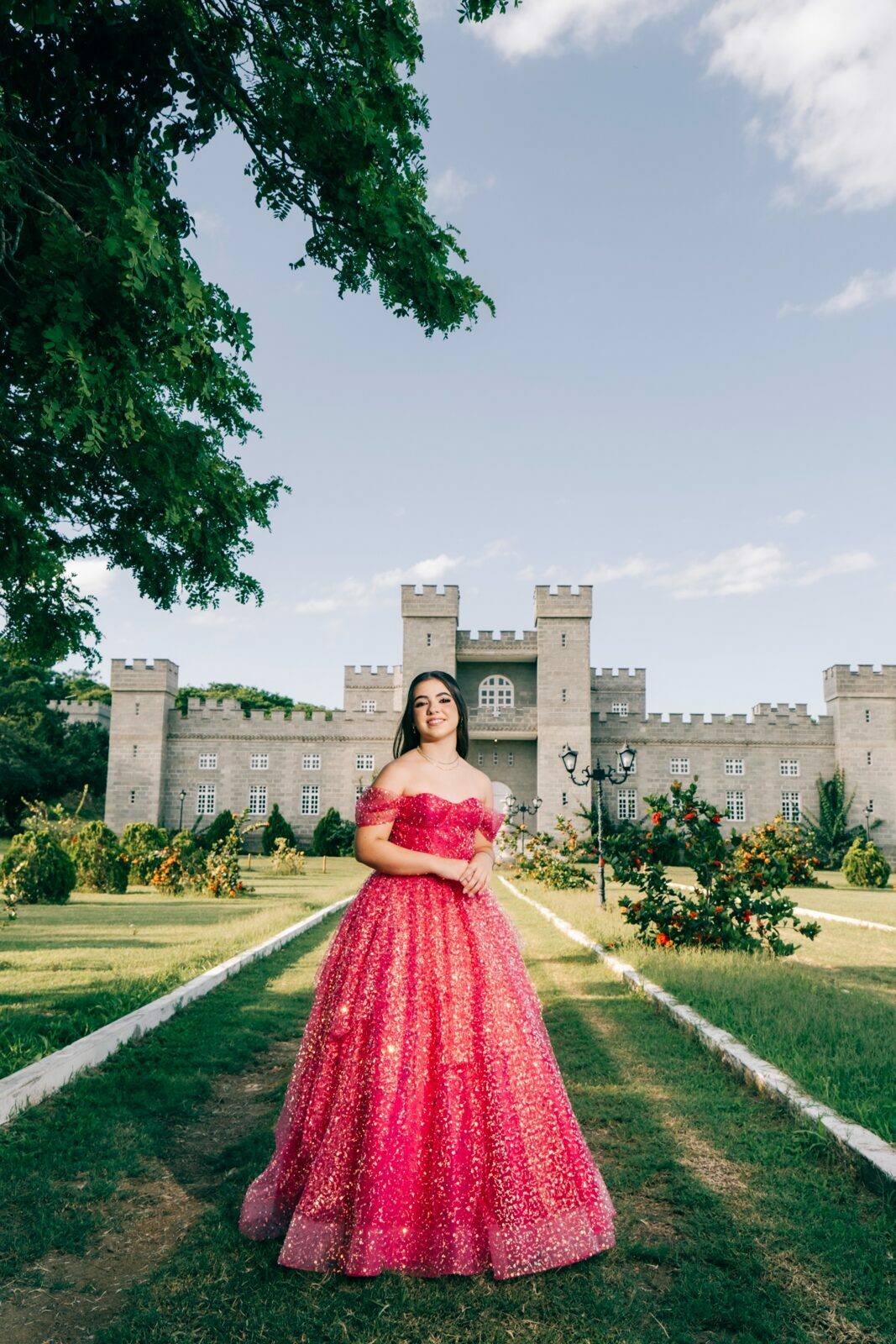 O ensaio de 15 anos de Maria Júlia foi um verdadeiro encontro entre sonho e realidade. Em um cenário encantador — digno de contos de princesa — o imponente Castelo da Torre se transformou no palco perfeito para celebrar essa fase tão especial da vida.