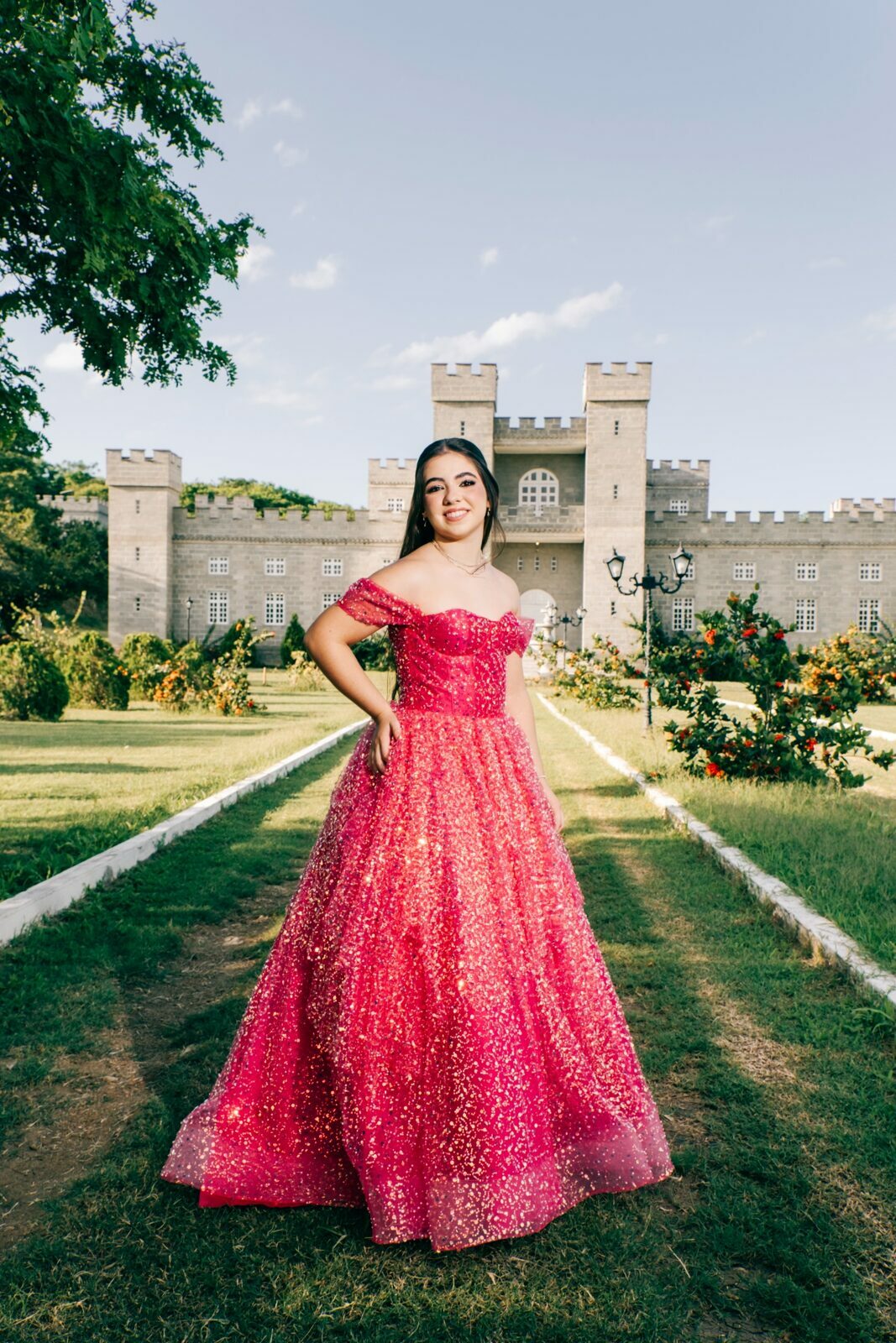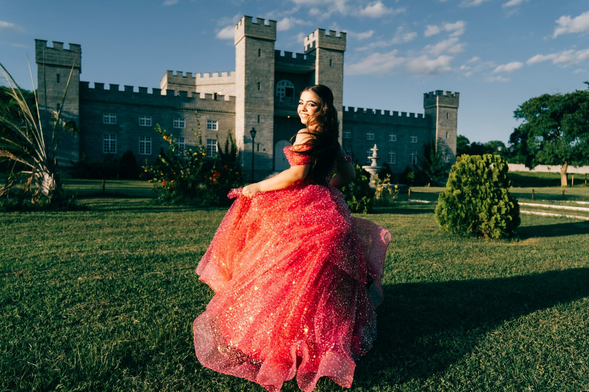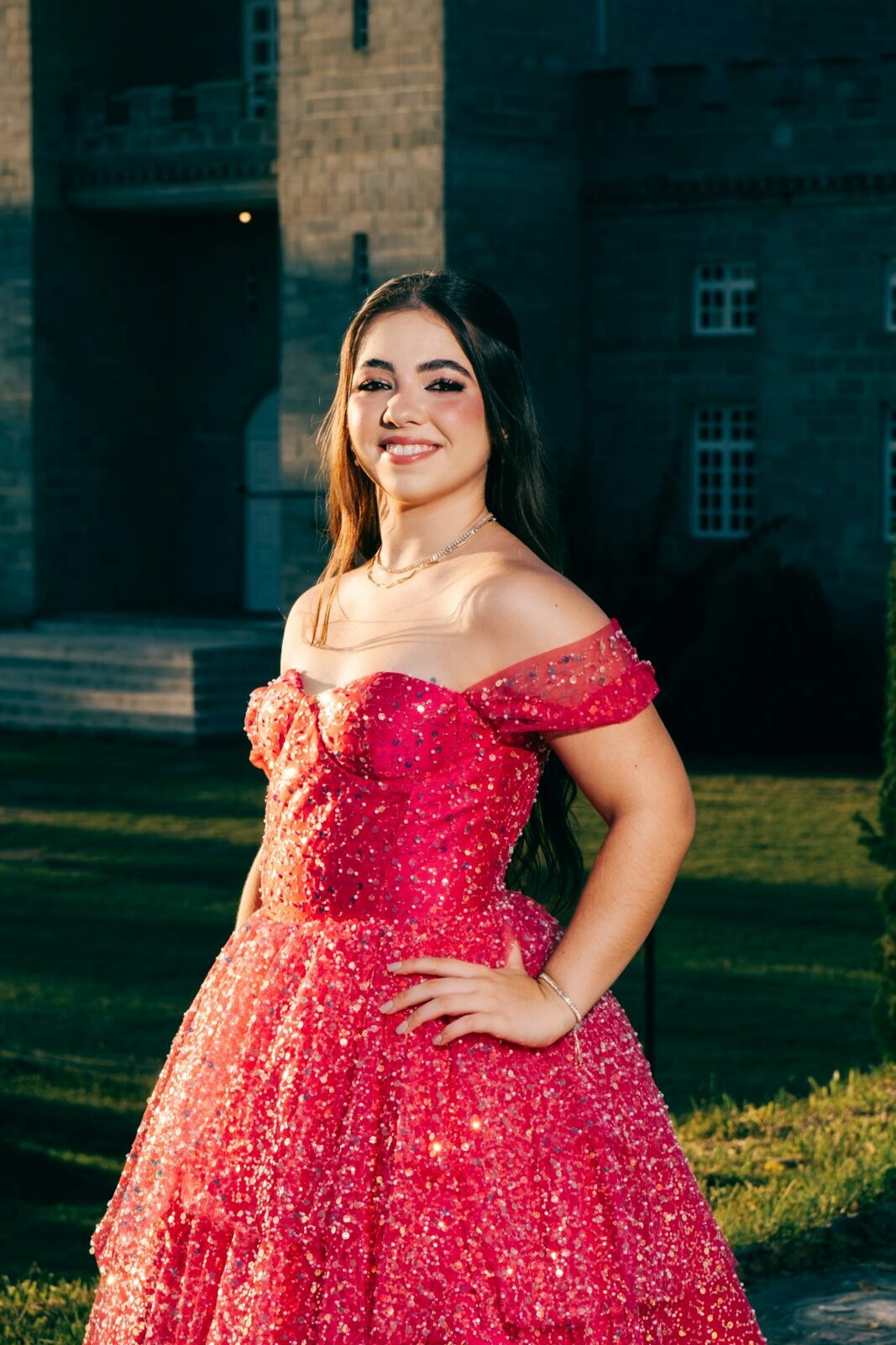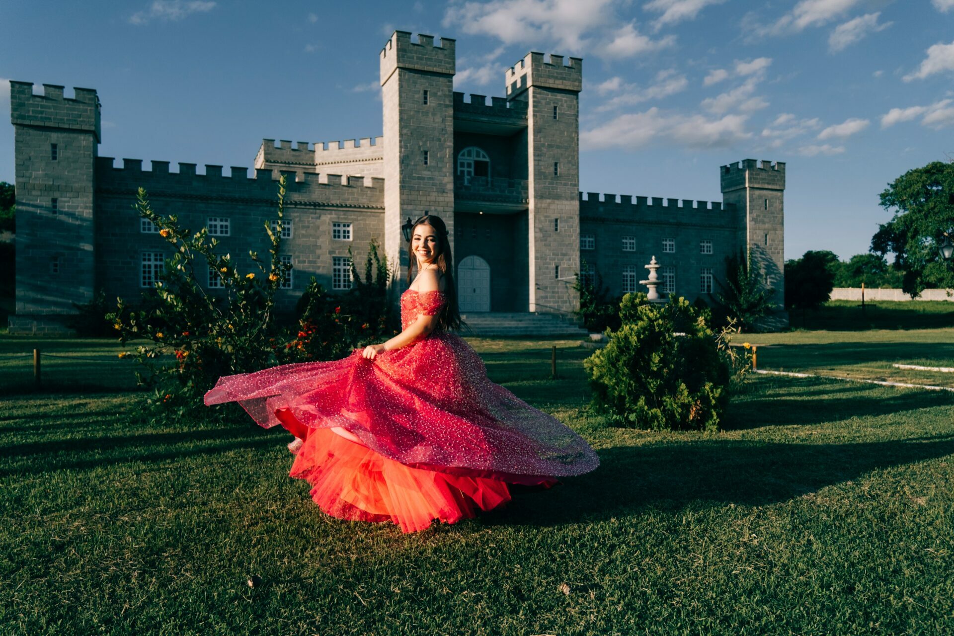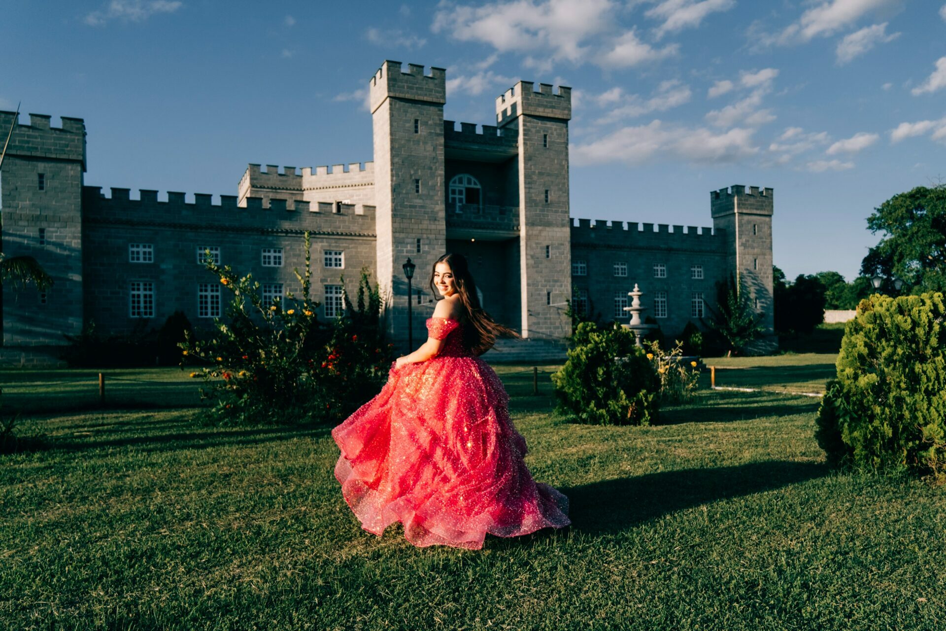 O ensaio de 15 anos de Maria Júlia foi um verdadeiro encontro entre sonho e realidade. Em um cenário encantador — digno de contos de princesa — o imponente Castelo da Torre se transformou no palco perfeito para celebrar essa fase tão especial da vida.
