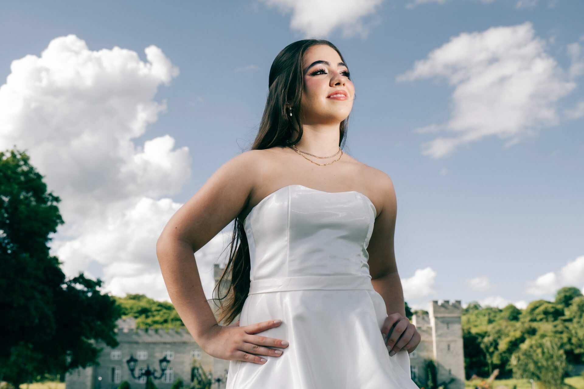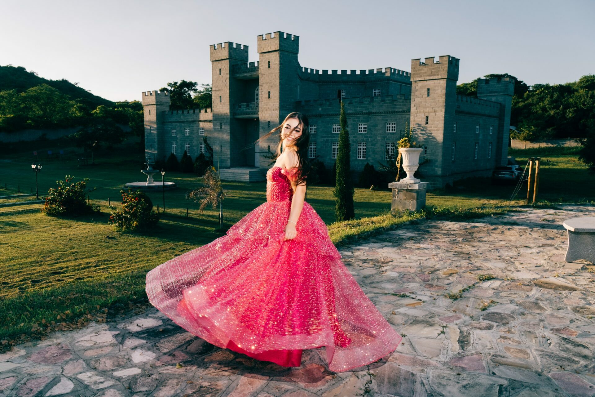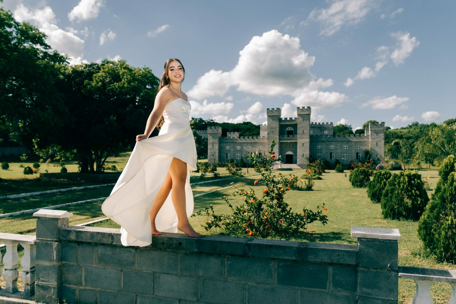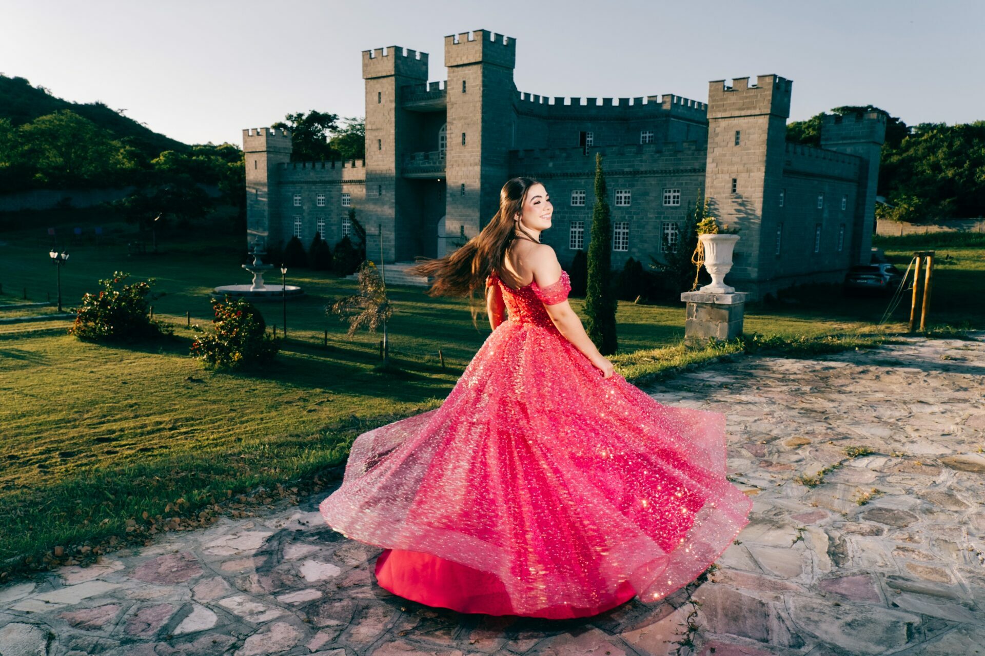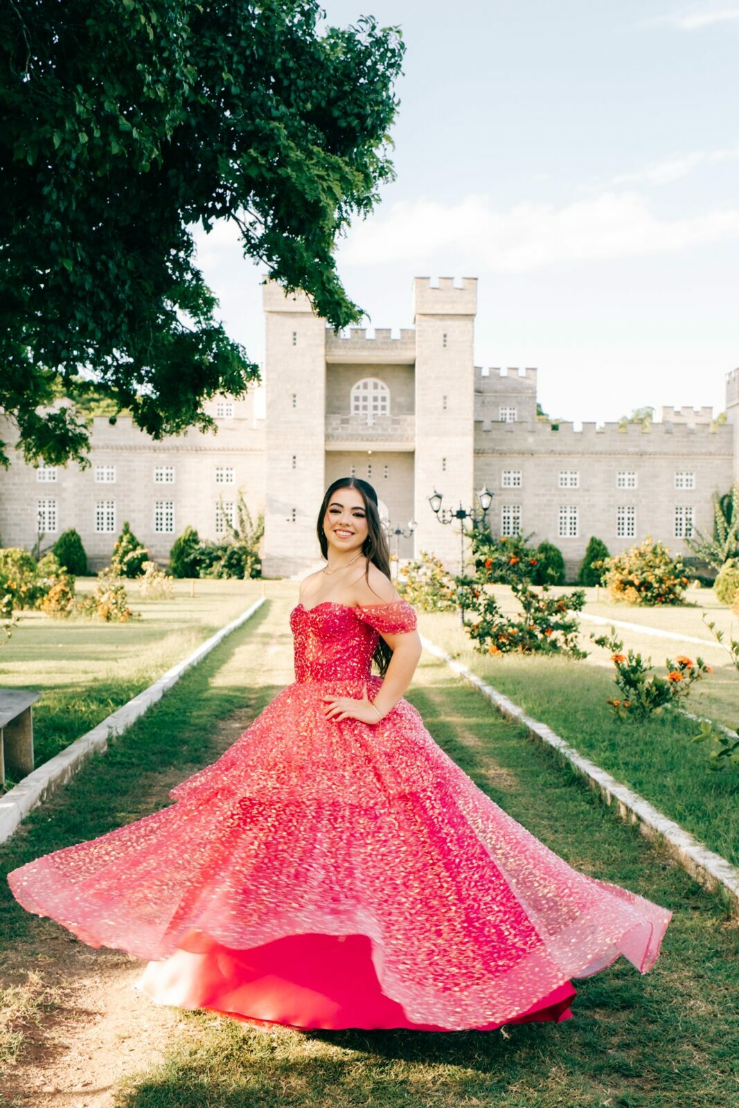 O ensaio de 15 anos de Maria Júlia foi um verdadeiro encontro entre sonho e realidade. Em um cenário encantador — digno de contos de princesa — o imponente Castelo da Torre se transformou no palco perfeito para celebrar essa fase tão especial da vida.
