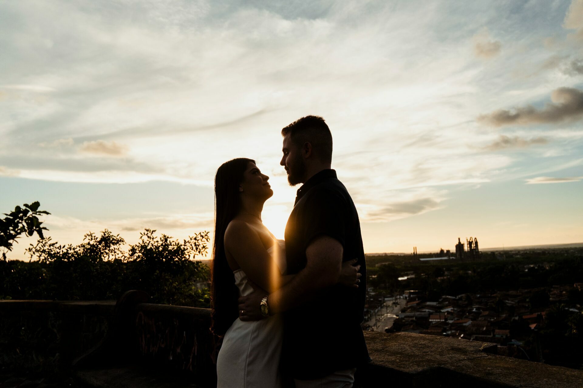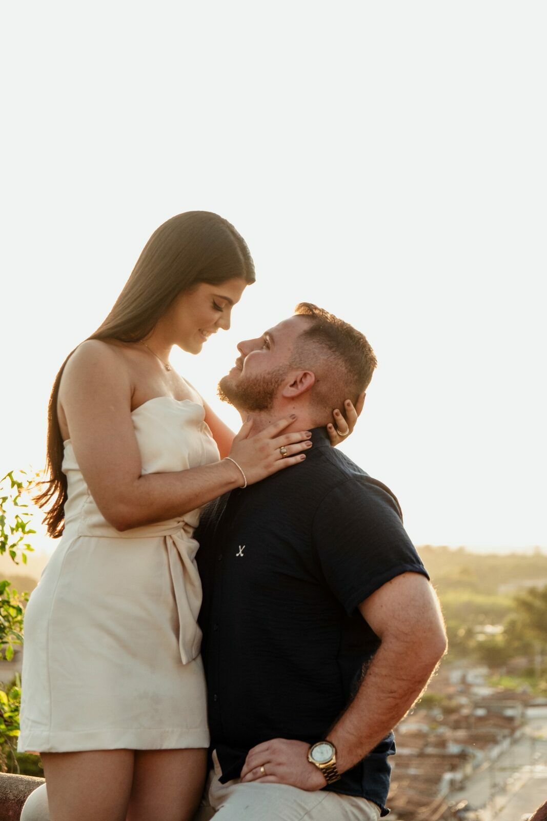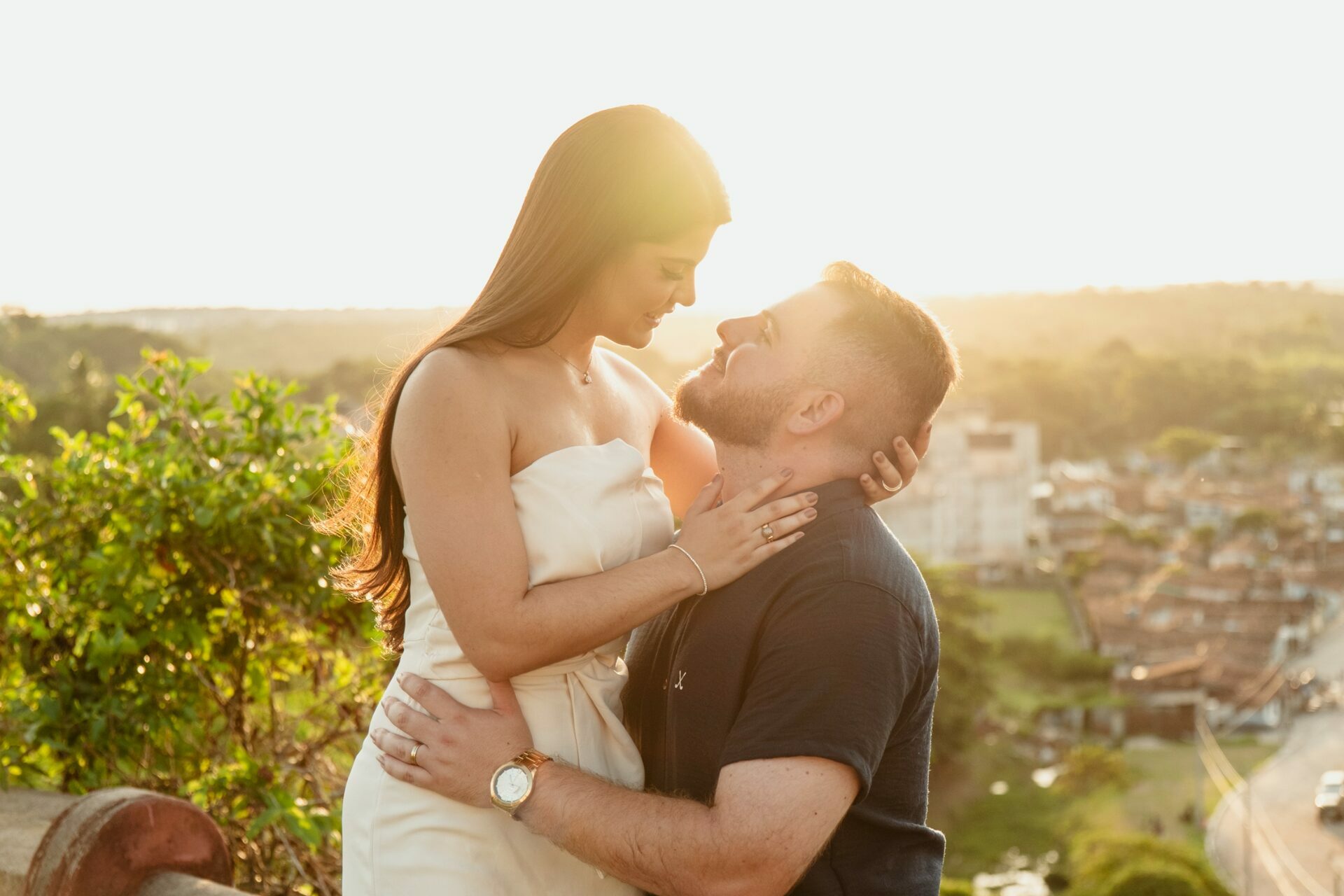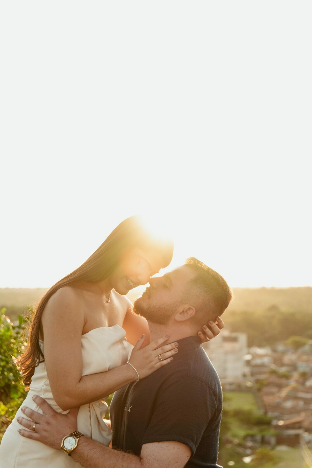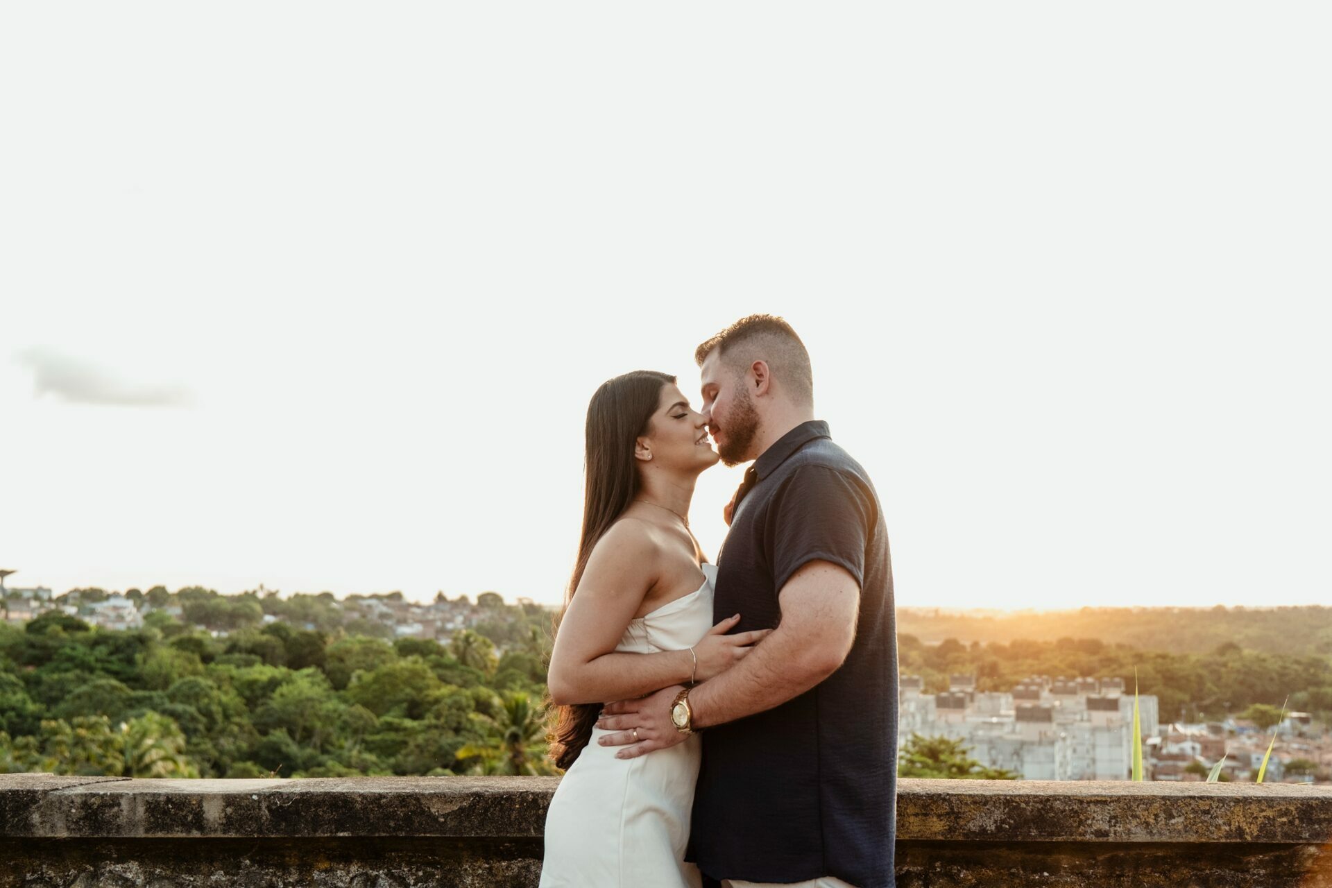 Foi uma tarde de carinho, cuidado e conexão — tudo com naturalidade e elegância — até que o céu presenteou o casal com um pôr do sol dourado, selando a promessa para o grande dia.